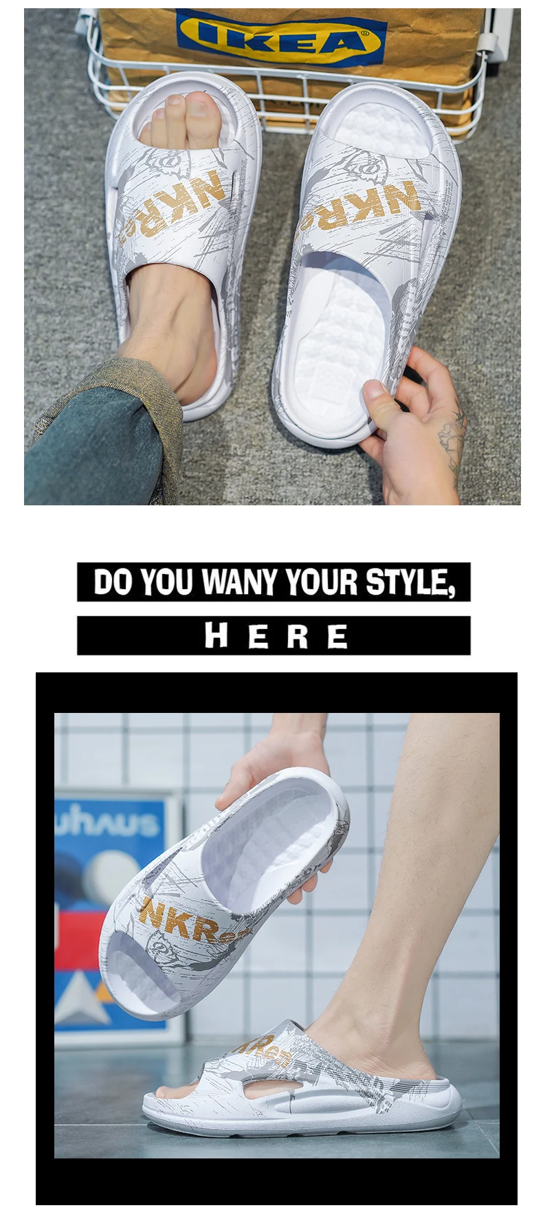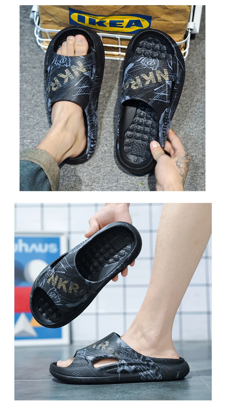 Fashion Men Massage Slippers Sides Indoor Outdoor Sandals Beach Casual Shoes Soft Sole Slides Men Flip-flops Men’s Home Slippers