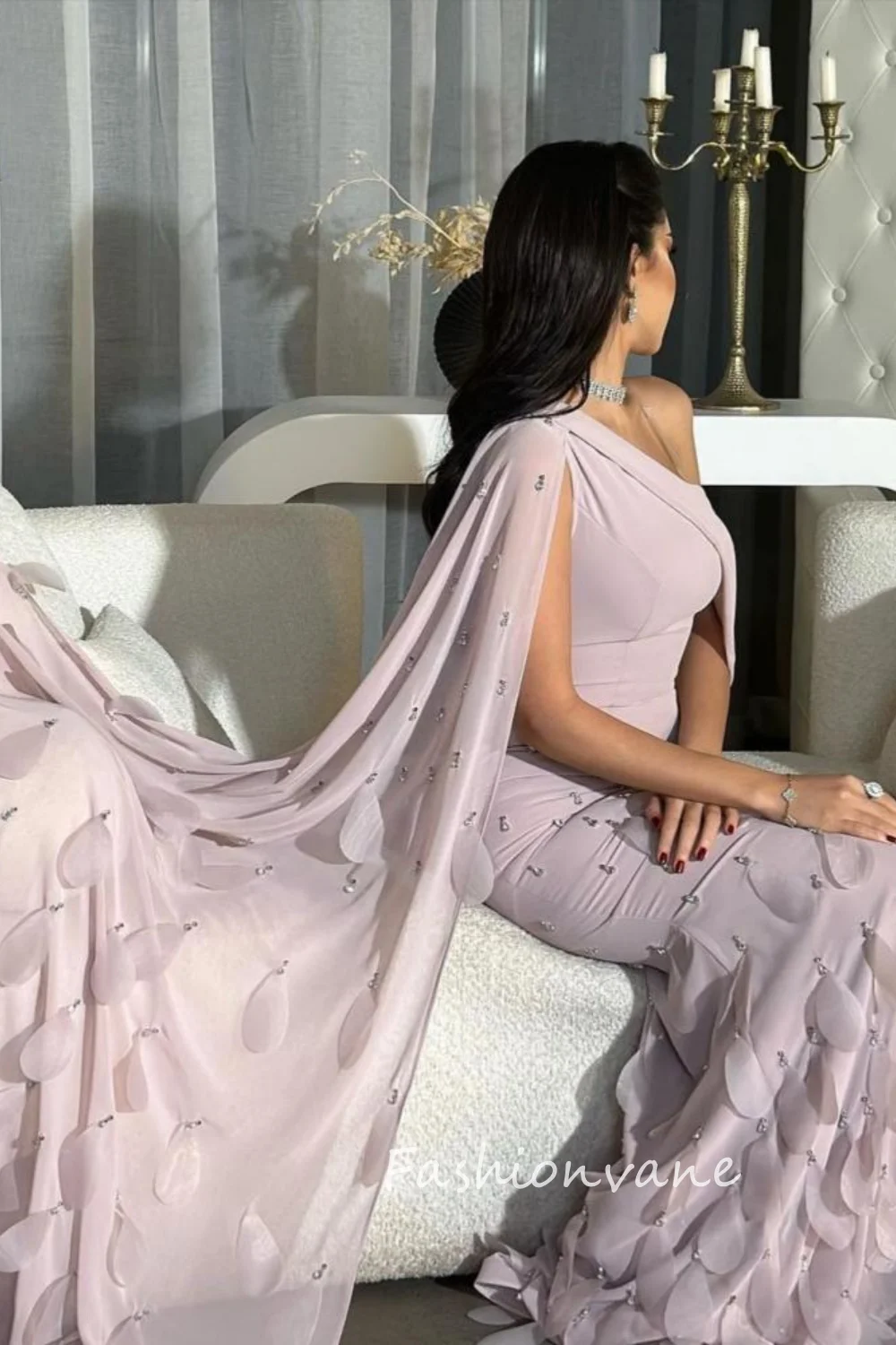 Fashionvane 2024 Mermaid One Shoulder Sleeveless Beaded Sequins Floor Length Saudi Formal Prom Dress Luxury Evening Gown