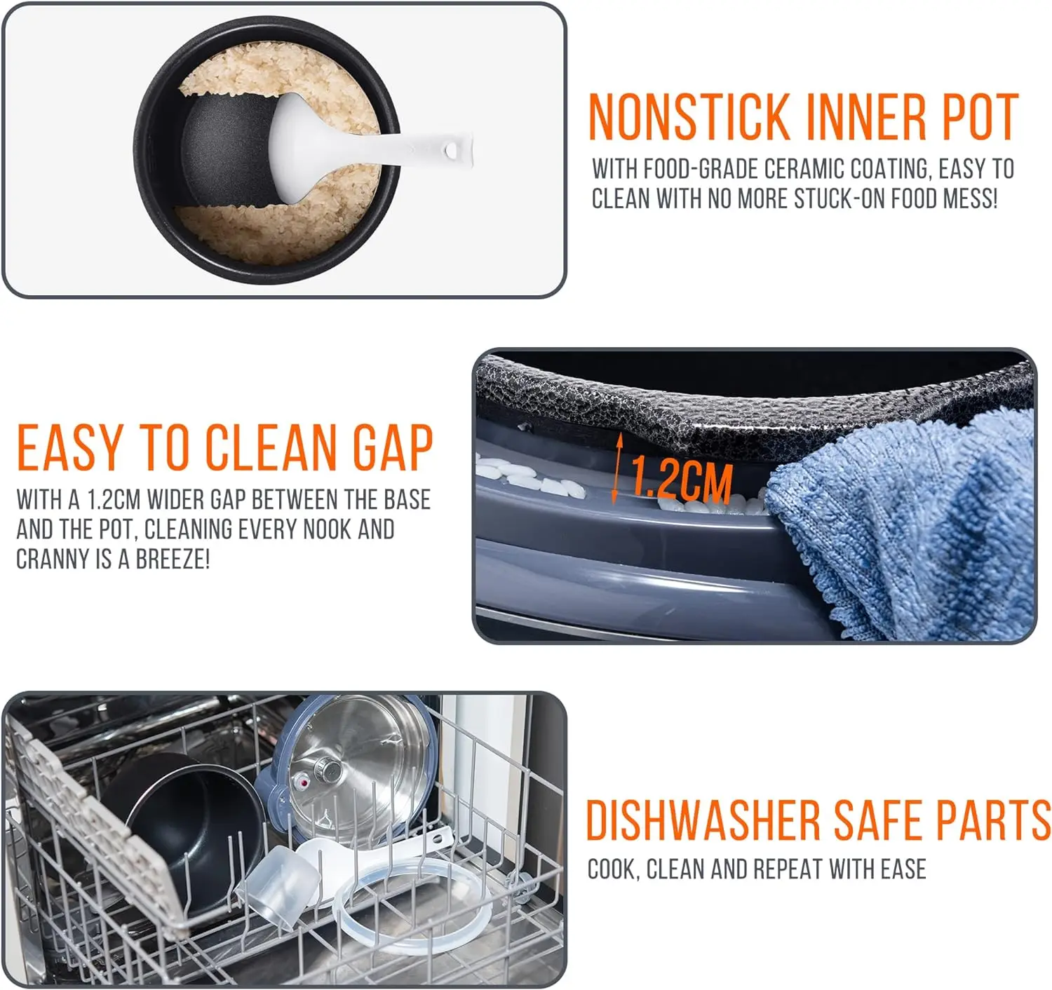 Small pressure rice cooker drastically reduce cooking times and help users save on electricity costs, allowing users to prepare meals quickly and easily. While retaining the flavors of food, it helps lock in essential vitamins and minerals, resulting in healthier meals. Ideal for busy individuals and families.