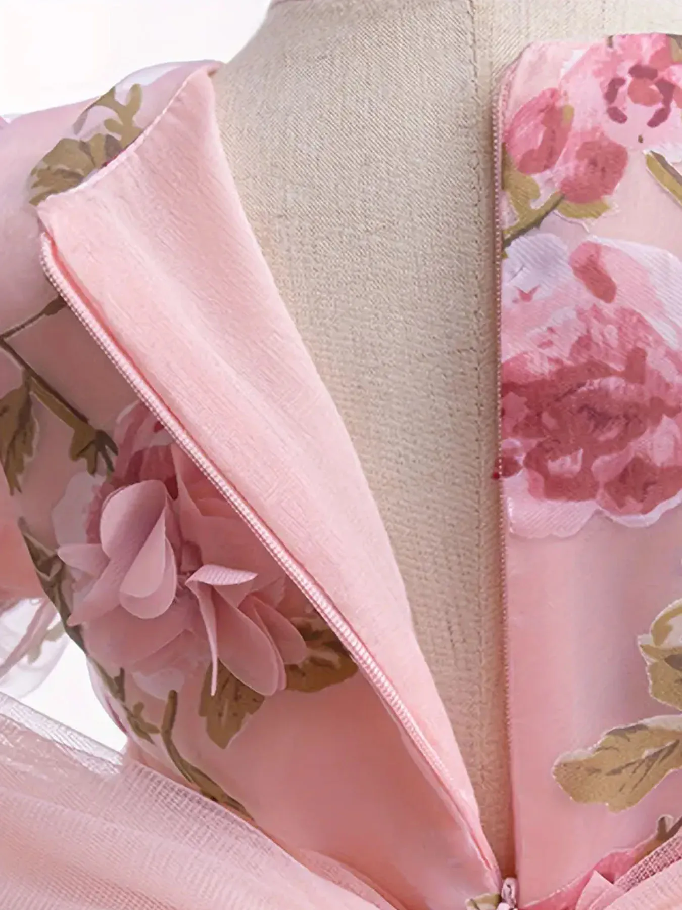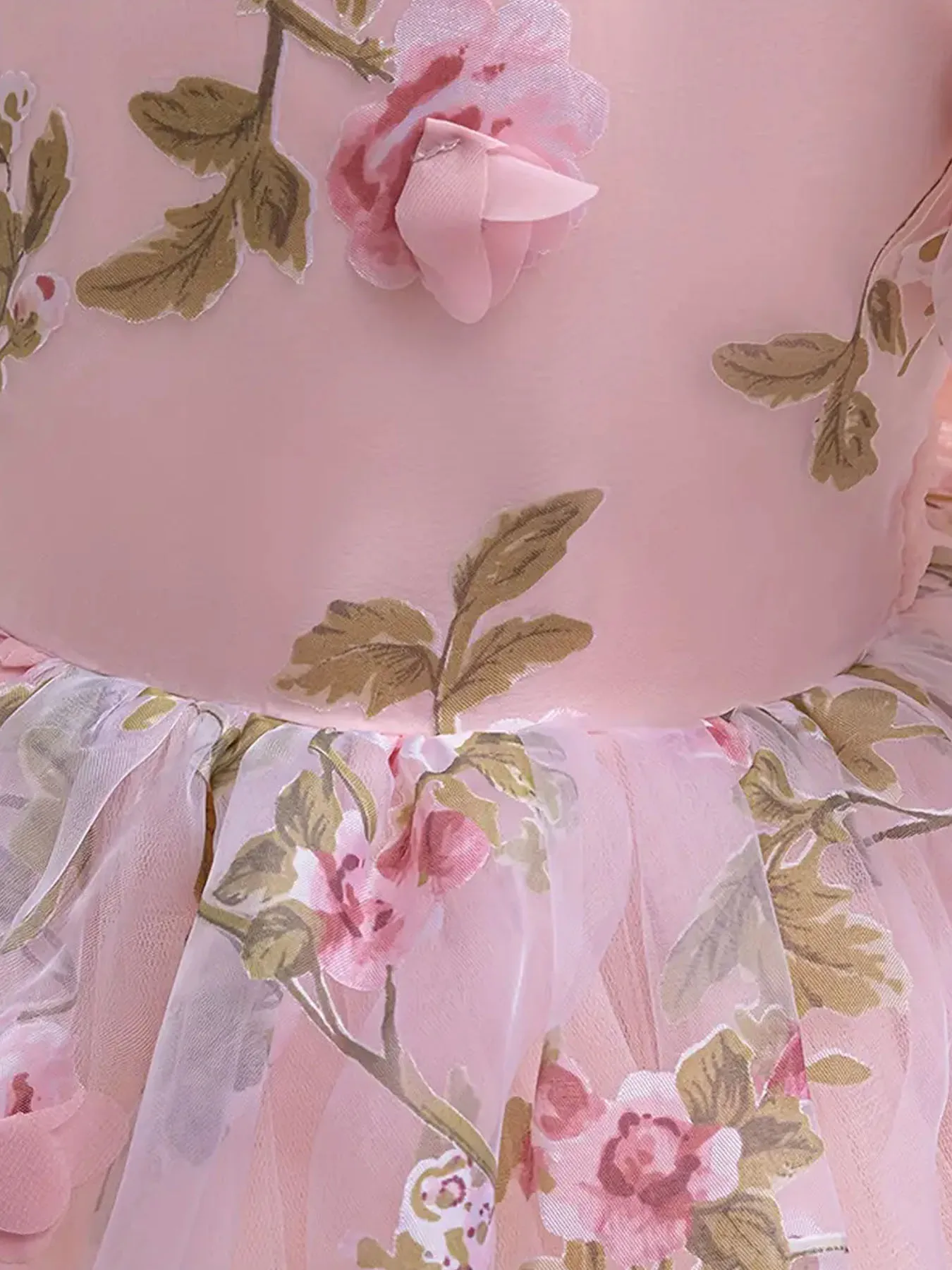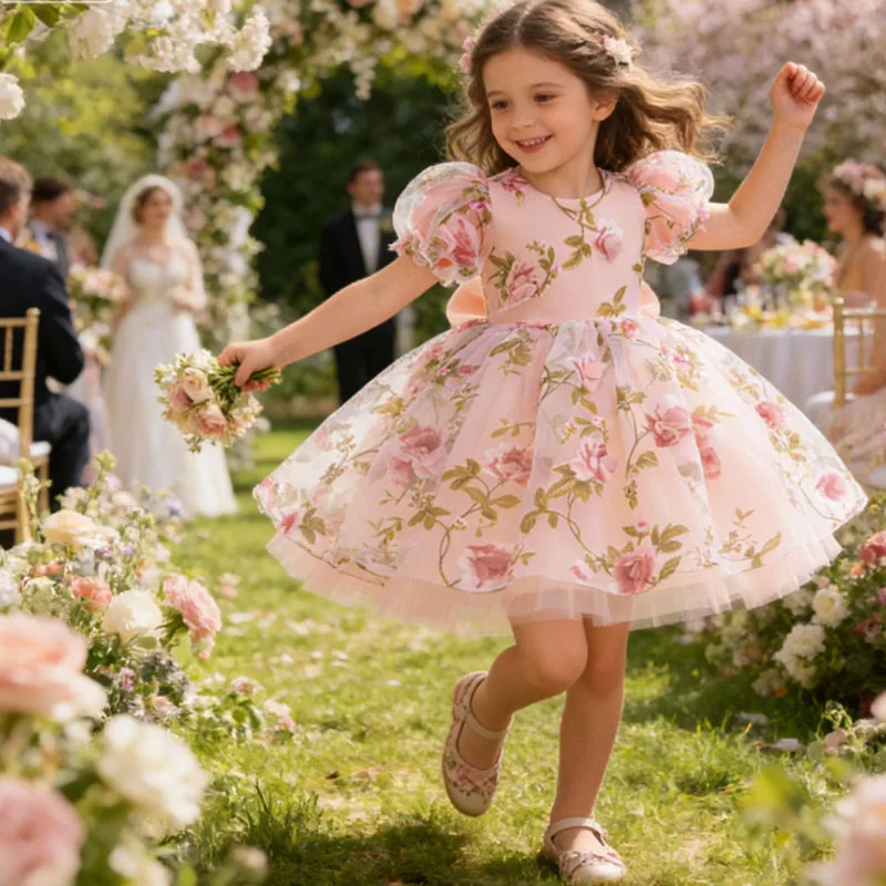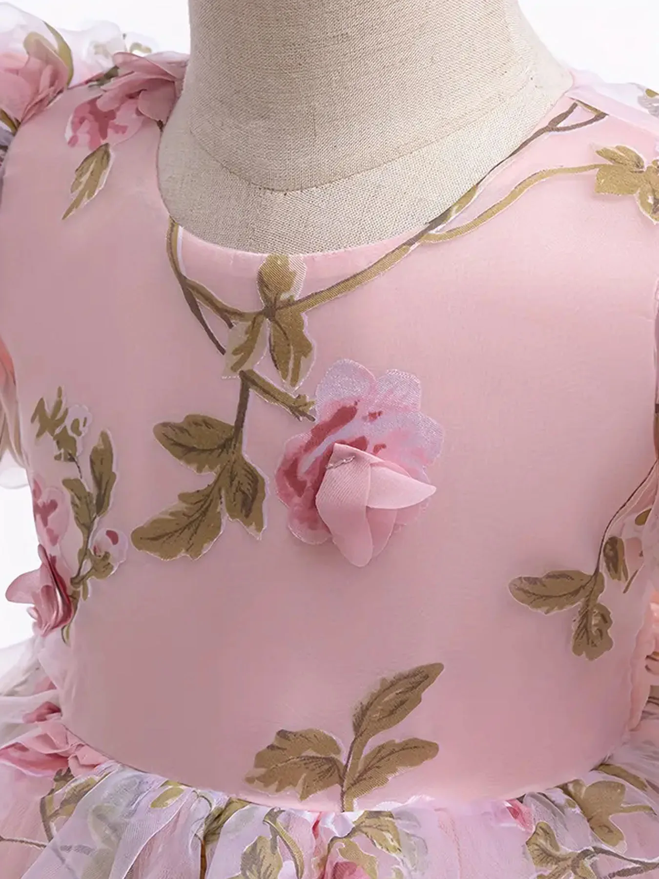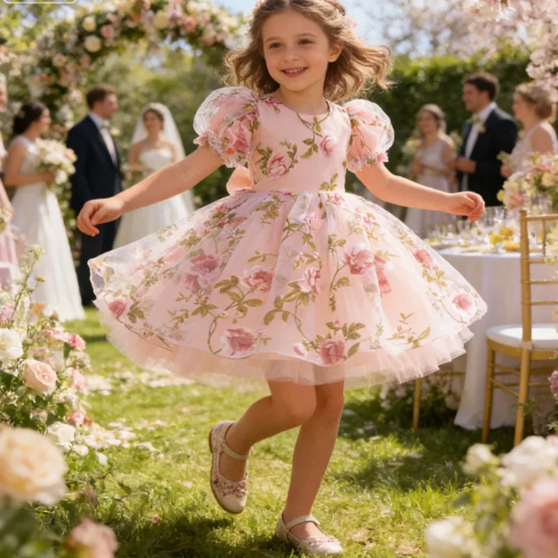 Festive Dress For Girl Elegant Flower Princess Dress Big Bow Children Dress Wedding Bridesmaid Vestido Eid Luxury Pageant Gown