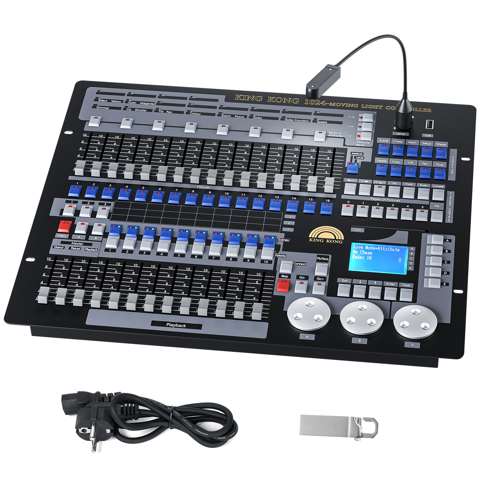 512/1990 standard, maximum 1024 control channels, photoelectric isolation signal output. L control the maximum dimming amount of 96 channels or 96 channels, and use pearl lamp base. L built-in graphic trajectory generator, with 135 built-in graphics, is convenient for users to control the graphic trajectory, such as quantity, picturesque, spiral, Rainbow, chasing, etc. Graphic parameters such as amplitude, velocity, interval, wave, and direction can be set independently. L l console has the function of writing light Library. L60 repeat scenarios. Multi-step scenarios are used for storage and single-step scenarios. You can store up to 600 steps in a multi-step scenario. L LCD display with backlight, l shutdown data keep in Chinese and English. L U diskbackup and upgrade. L work professional gooseneck lamp, suitable for indoor and outdoor performances.