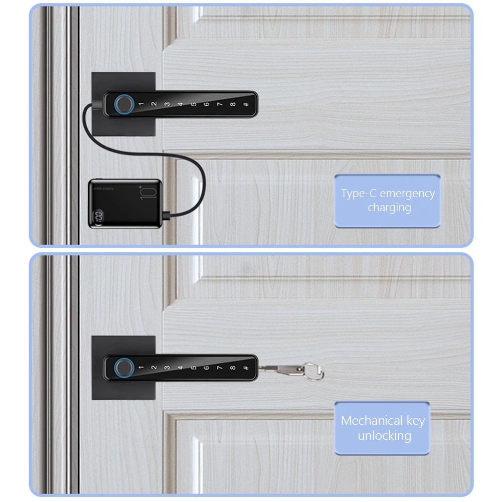 Fingerprint Door Lock TUYA/TTLOCK APP Control Digital Electronic Door Lock Type-C Emergency Charge for 3.5-6.5cm Thickness Doors