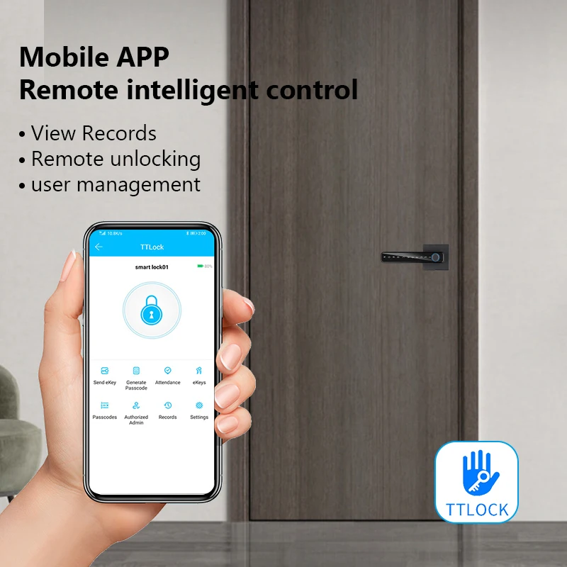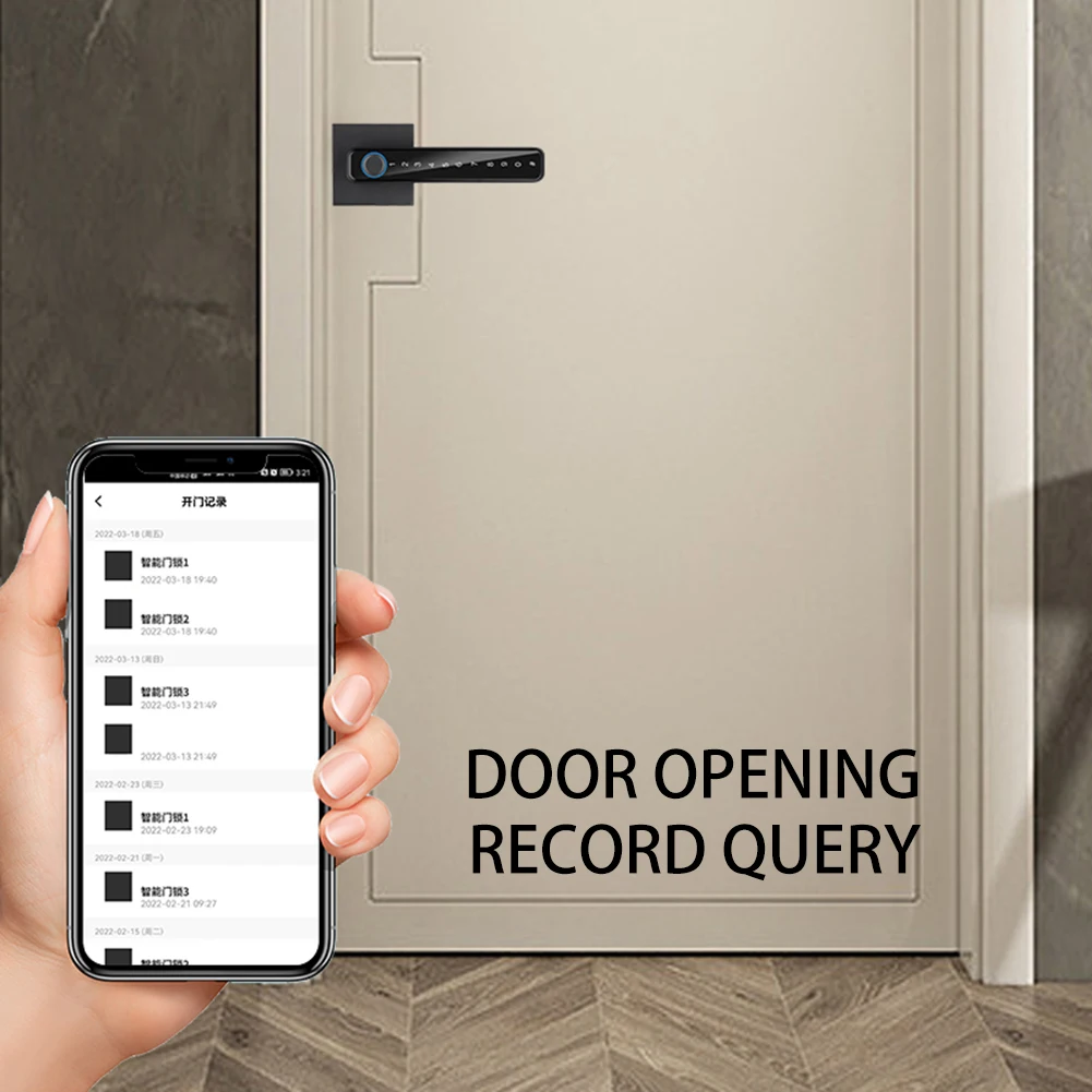 2. Smartphone App: Easily achieve intelligent life with home connectivity. User management – Add, delete users, change permissions; User password management – time setting, deletion, and viewing status; Control the unlocking record at all times, and remotely view the lock history through the mobile app; No need for internet connection, remote password sending to relatives and friends to unlock.