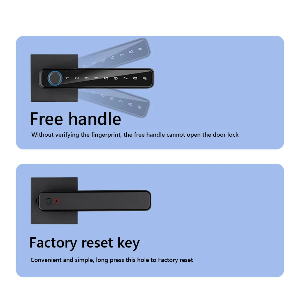 1. Multiple Unlocking Methods: Including semiconductor fingerprint, digital password, traditional mechanical backup keys (2), TUYA/TTLOCK mobile Bluetooth app (optional). Both the elderly and children can use it, targeting different scenes and groups of people. Quick unlocking is available in multiple ways for you to use.