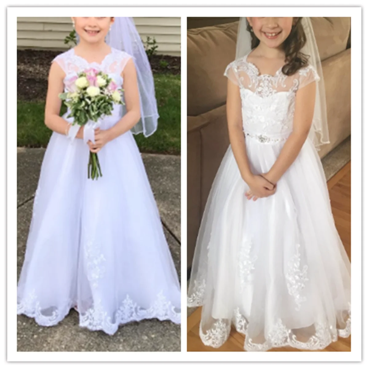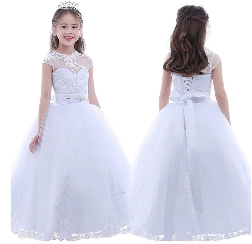 First Holy Communion Dress White Baptism Dresses for Girls 7-16 Lace Princess Flower Girls Gown