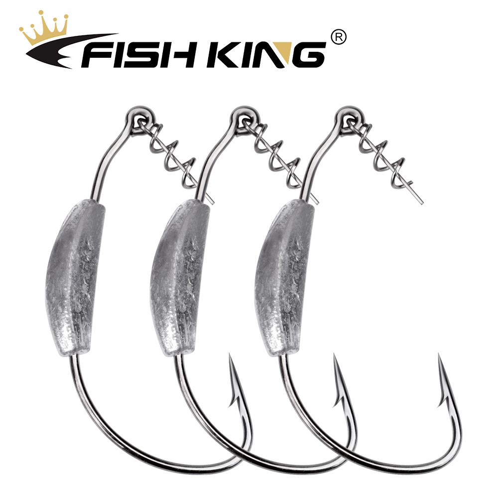 FISH KING 5Pcs Offset Fishing Hooks 2g-7g Weighted Crank Hook Soft Baits Barbed Hook Jig Worm Hook for Texas Rigs Fishing Tackle