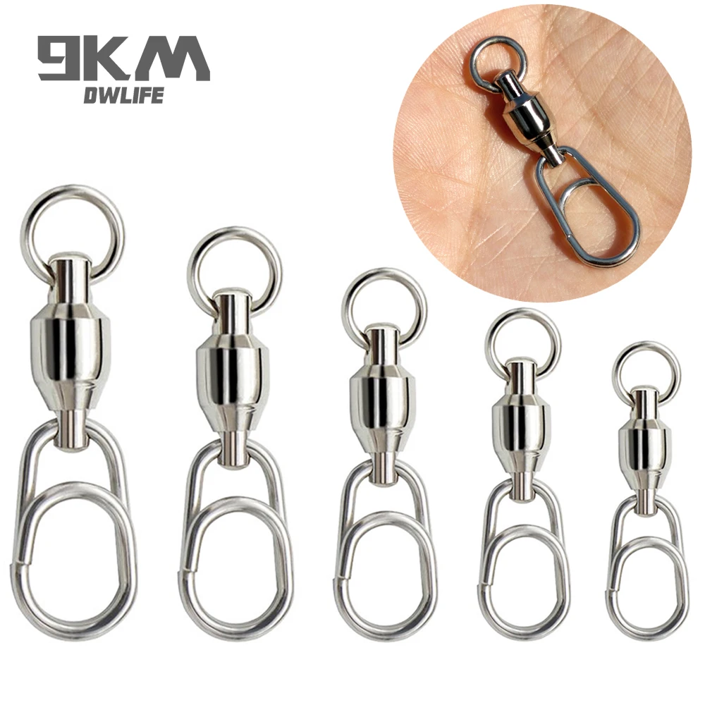 9KM DWLIFE Stainless Steel Ball Bearing Fishing Swivels : anti-rust, anti-corrosion, wear-resistant, impact-resistant. The solid welded ring can withstand heavy duty and can be used for saltwater fishing and freshwater fishing.