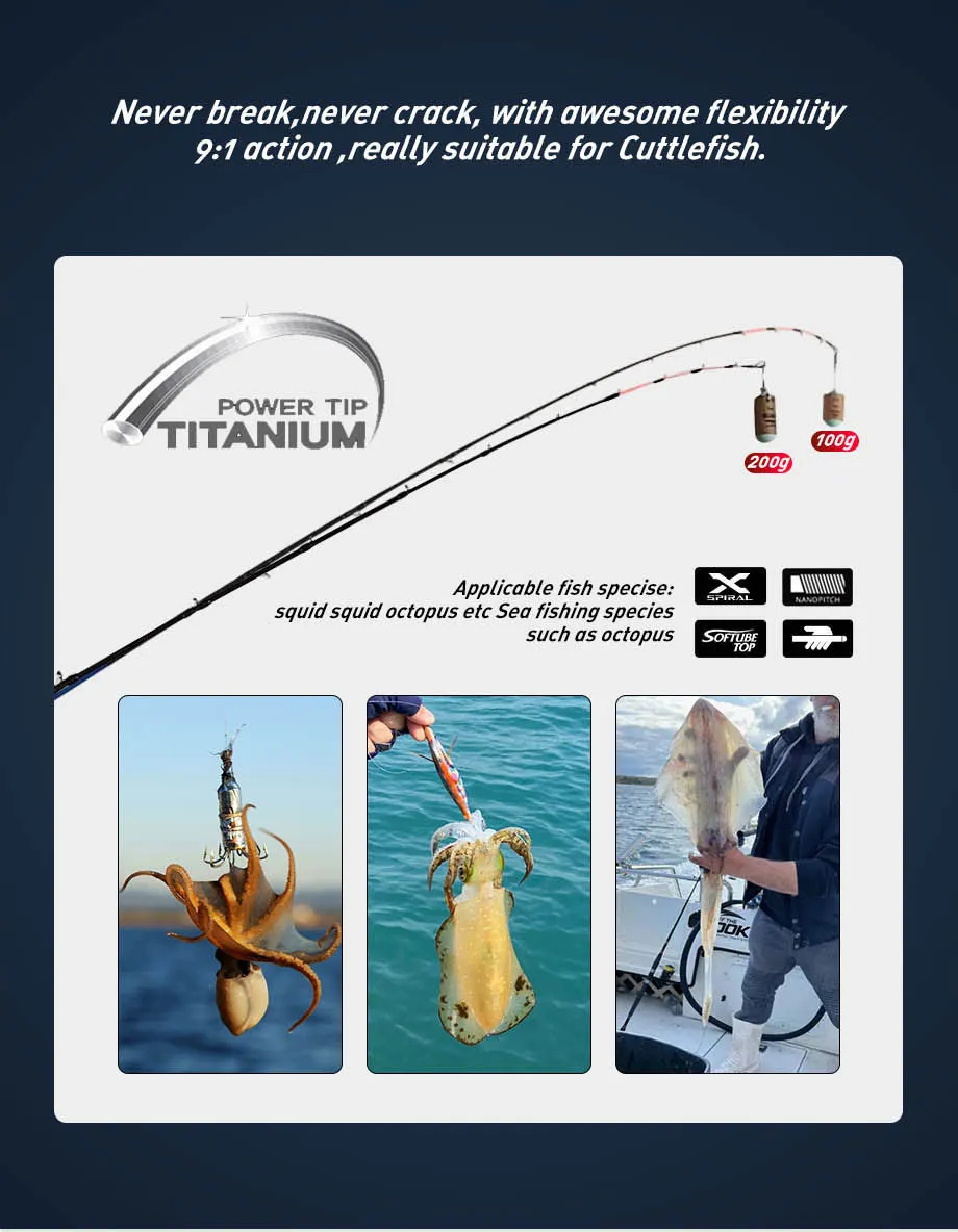 2.This rod is suitable forfishing octopus,suqid,black snapper bass and so on