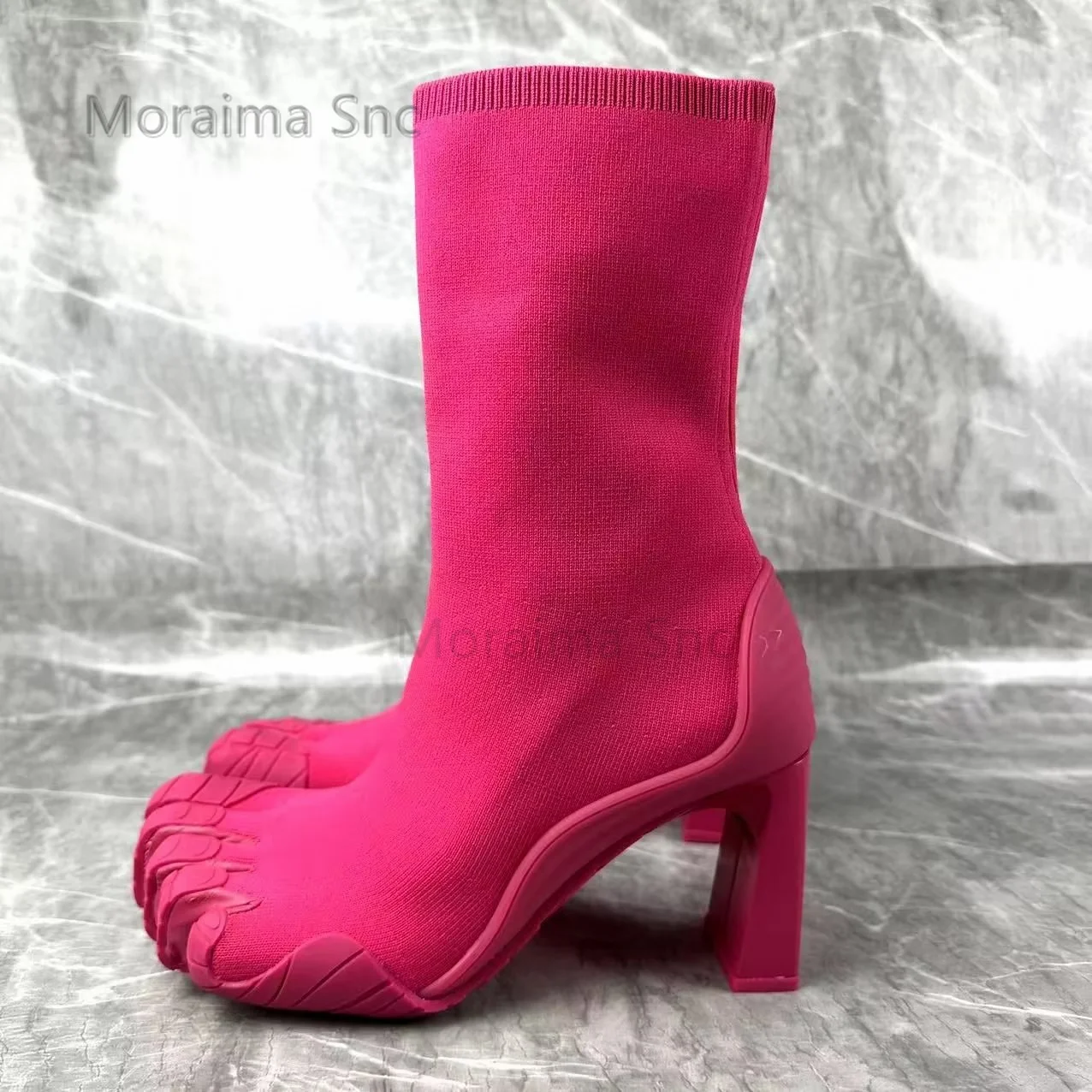 Five Fingers Knit Sock Boots for Women Novelty Style High Heels for Women Boats Black Red Short Ankle Boots Ladies Shoes