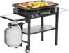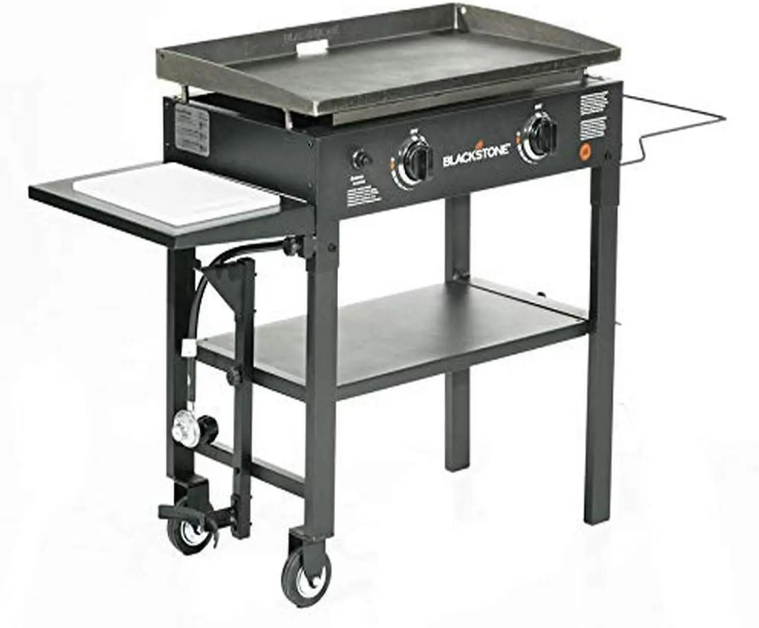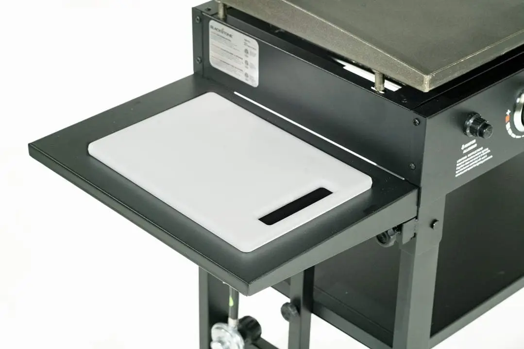 - COMFORT AT YOUR FINGERTIPS – This Griddle comes with a side shelf for placing a cutting board and a garbage bag holder. 1 Lower shelf for easy storage of food and utensils. Easily wheel around your yard or transport from your backyard to the campsite thanks to the removable griddle top, fold up legs and four industrial strength caster wheels. Side handles for easy maneuvering