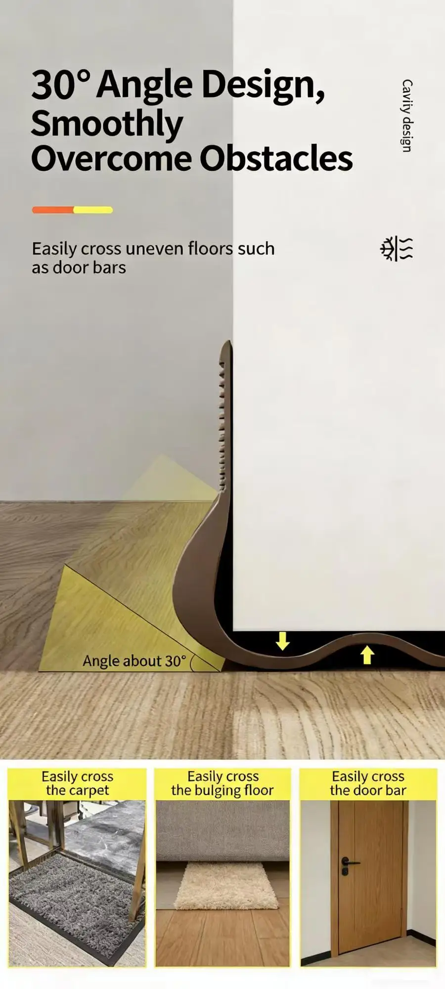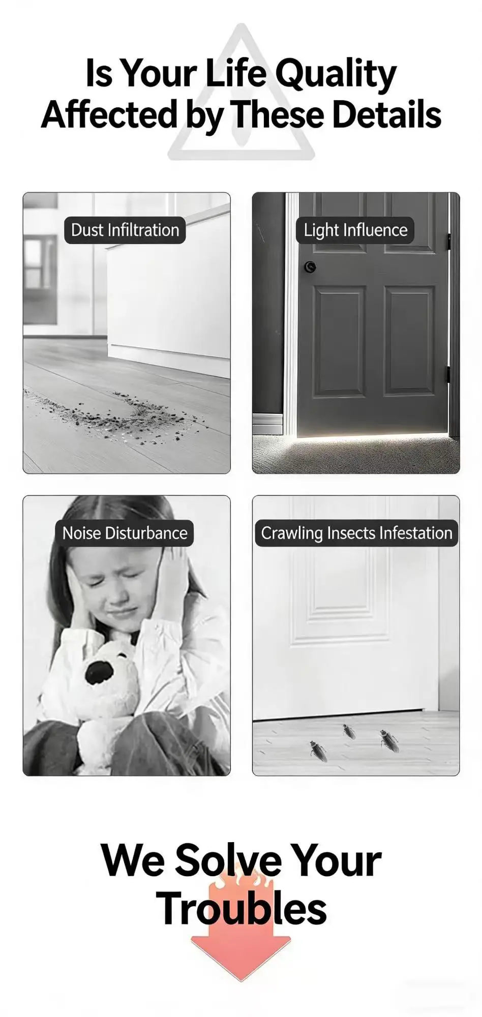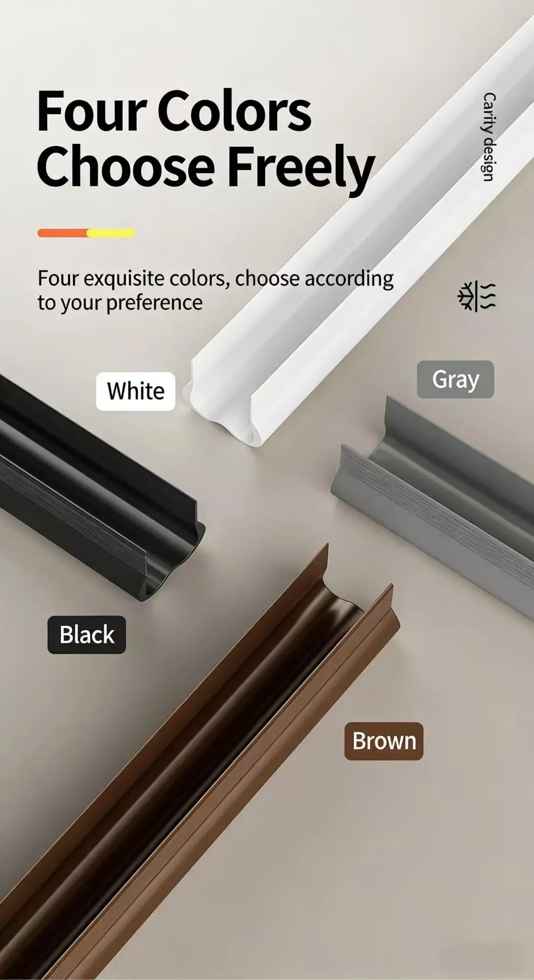 Our sealing strips are engineered to be completely waterproof, effectively preventing water seepage, condensation, and humidity from entering your home. This feature is essential for maintaining a dry, mold-free environment, especially in areas with high rainfall or snowfall, and for protecting doors and floors from water damage. -