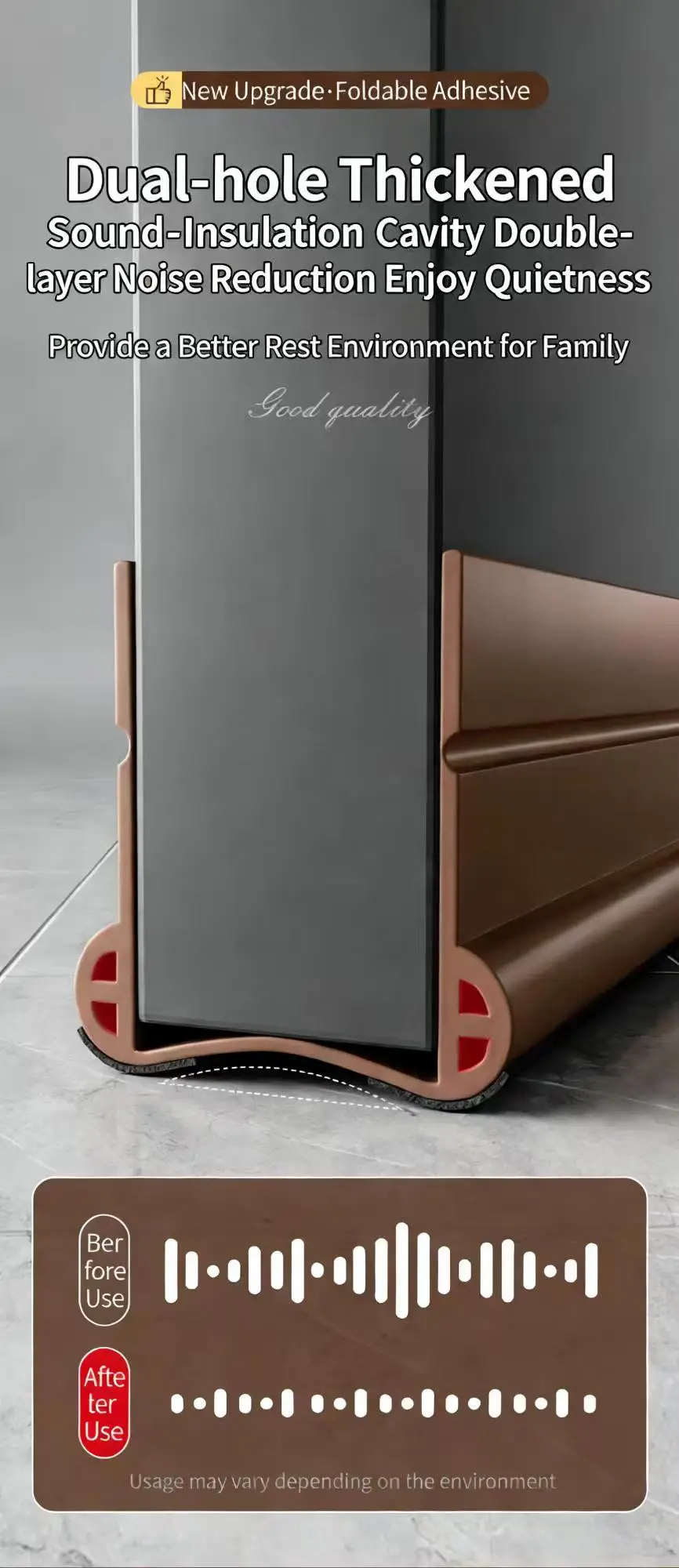 Designed with advanced soundproof technology, this Soundproof Door Gap Weather Stripping significantly reduces the transmission of external noise. Whether you’re in a busy city or a noisy industrial area, our product helps create a quieter indoor environment, making it an essential addition for homes, offices, and commercial spaces. -