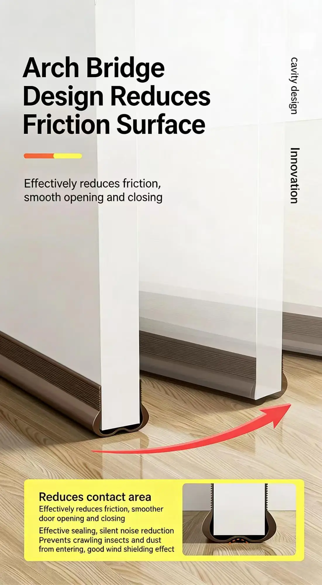 Our Wind & Dust Proof Draft Stopper Tape offers a robust barrier against drafts, dust, pollen, and other airborne particles. By sealing the gaps at the bottom of doors, it helps maintain a comfortable indoor temperature, reduces the infiltration of pollutants, and enhances overall indoor air quality. -
