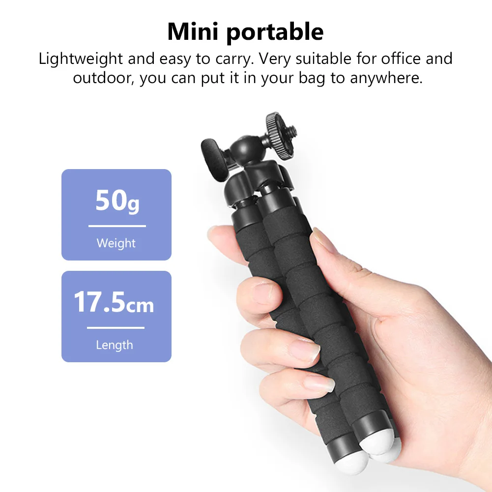 Bendable tripod. Adjustable octopus style legs help to capture clean shots from any angle even in the move. You can place the tripod on a plane or slope, or wrap it on a small tree and post.