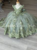Flower Girl Dress For Wedding With Bow Lace Applique Tulle Puffy Shiny Kids Birthday Party First Communion Ball Gowns Customized