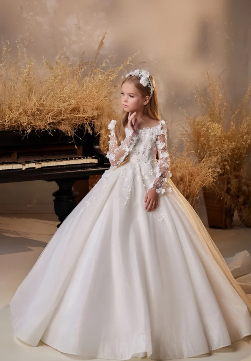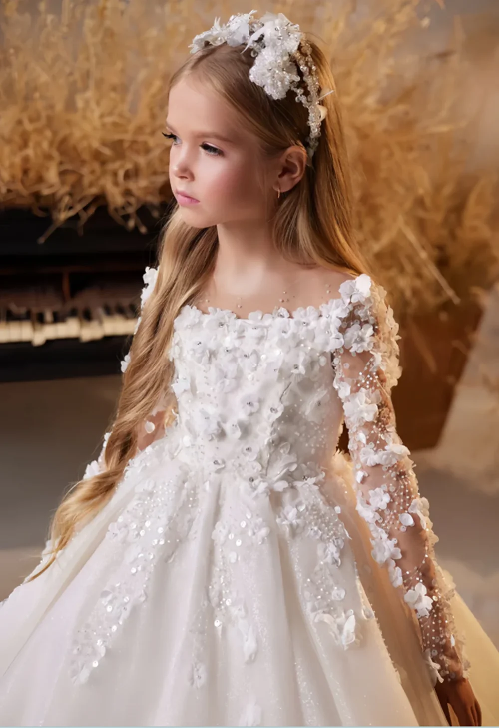 Flower Girl Dresses for Kids Princess Customized Butterfly Lace Beading Floral Wedding Even Party Birthday Gowns