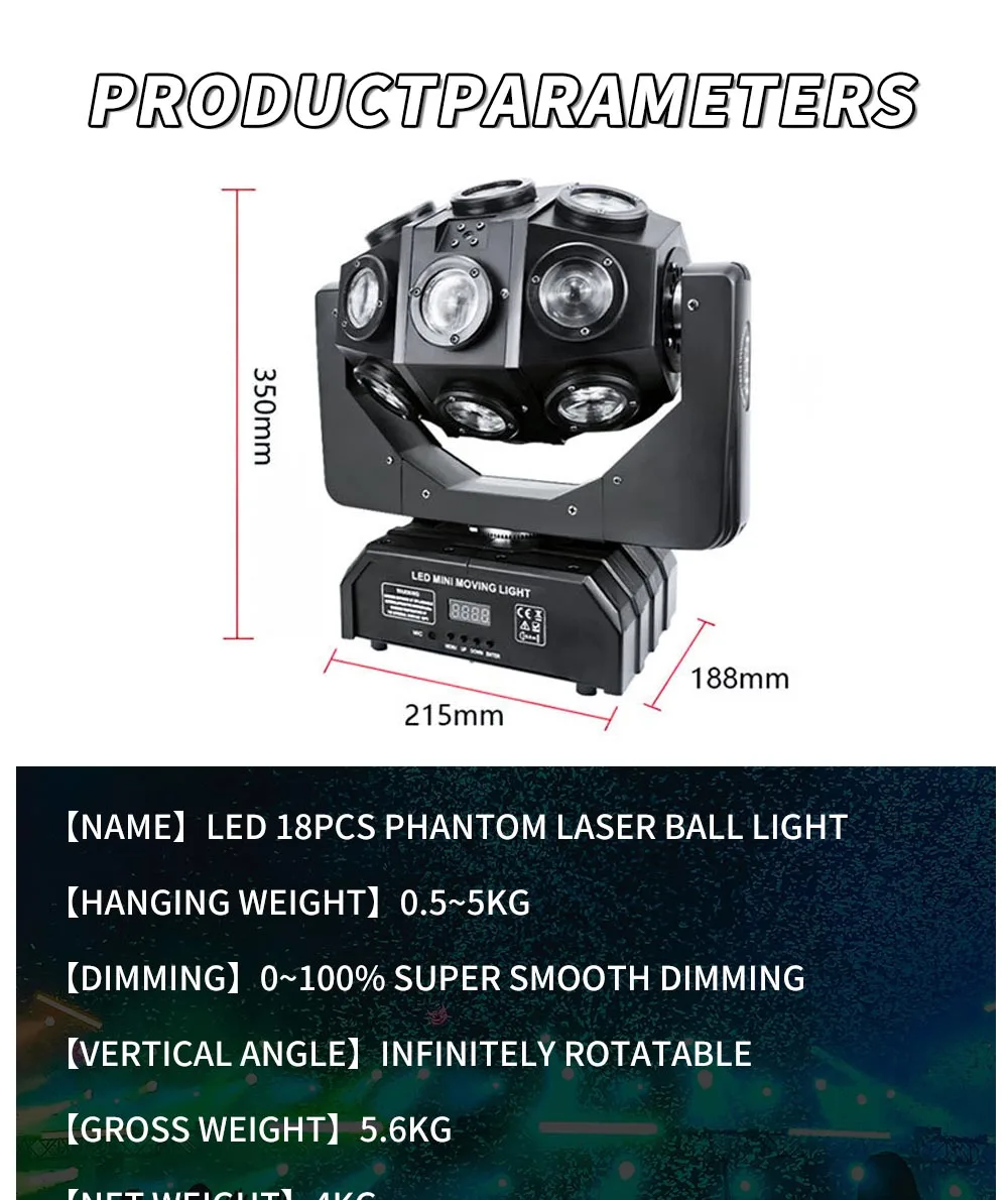 FODGDT 18x12W RGBW 4in1 Led Beam Moving Head Laser Lights Bar Effect Light Stage DMX Remote Control for Club Party DJ DISCO KTV