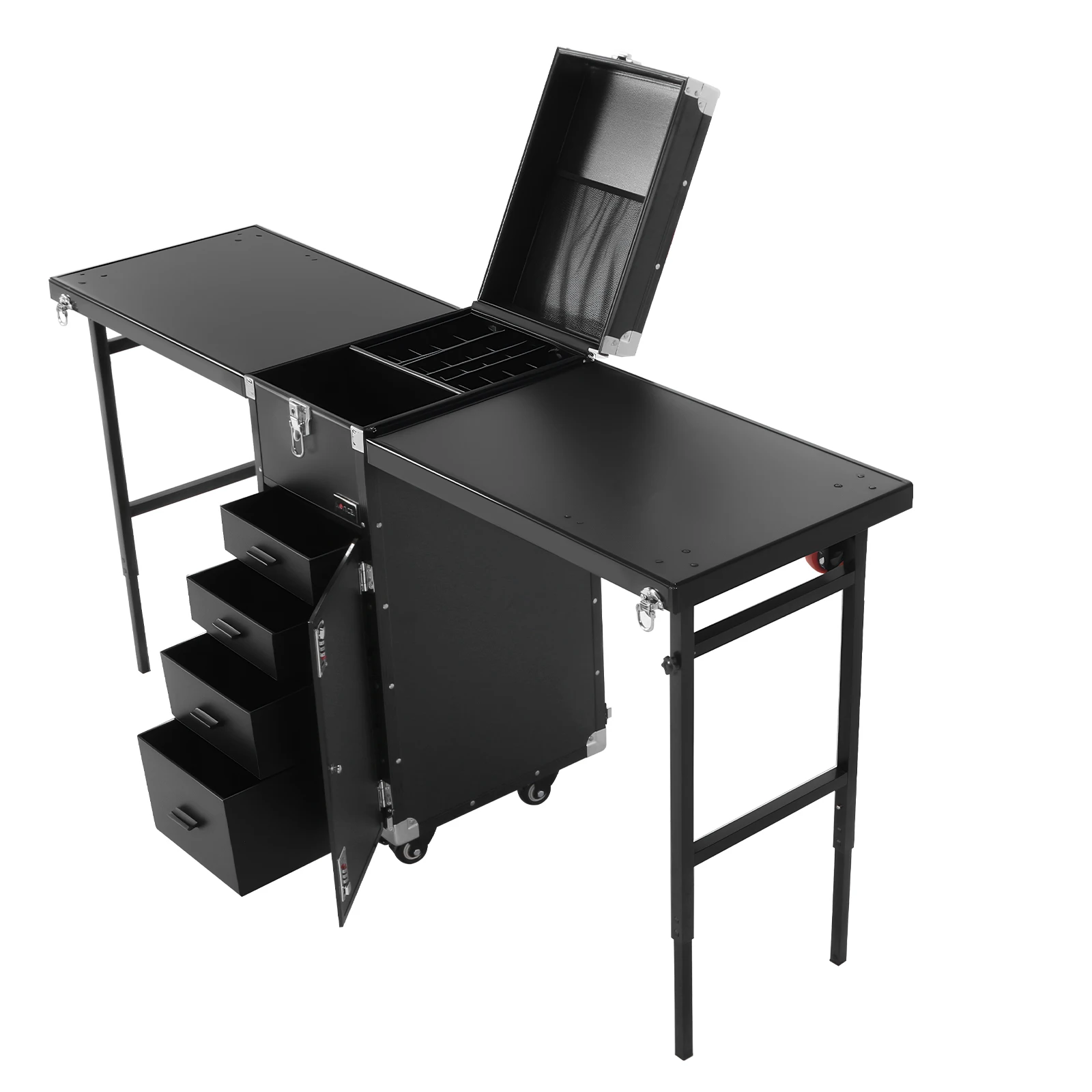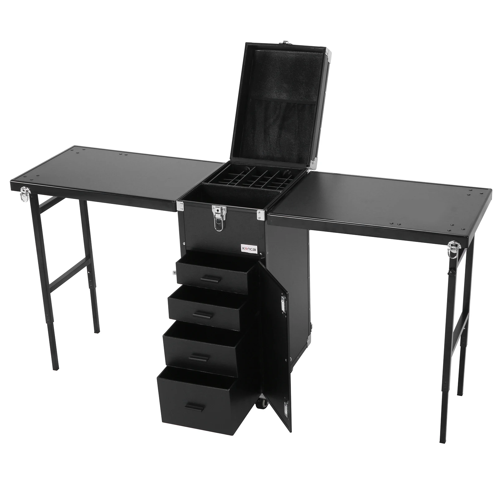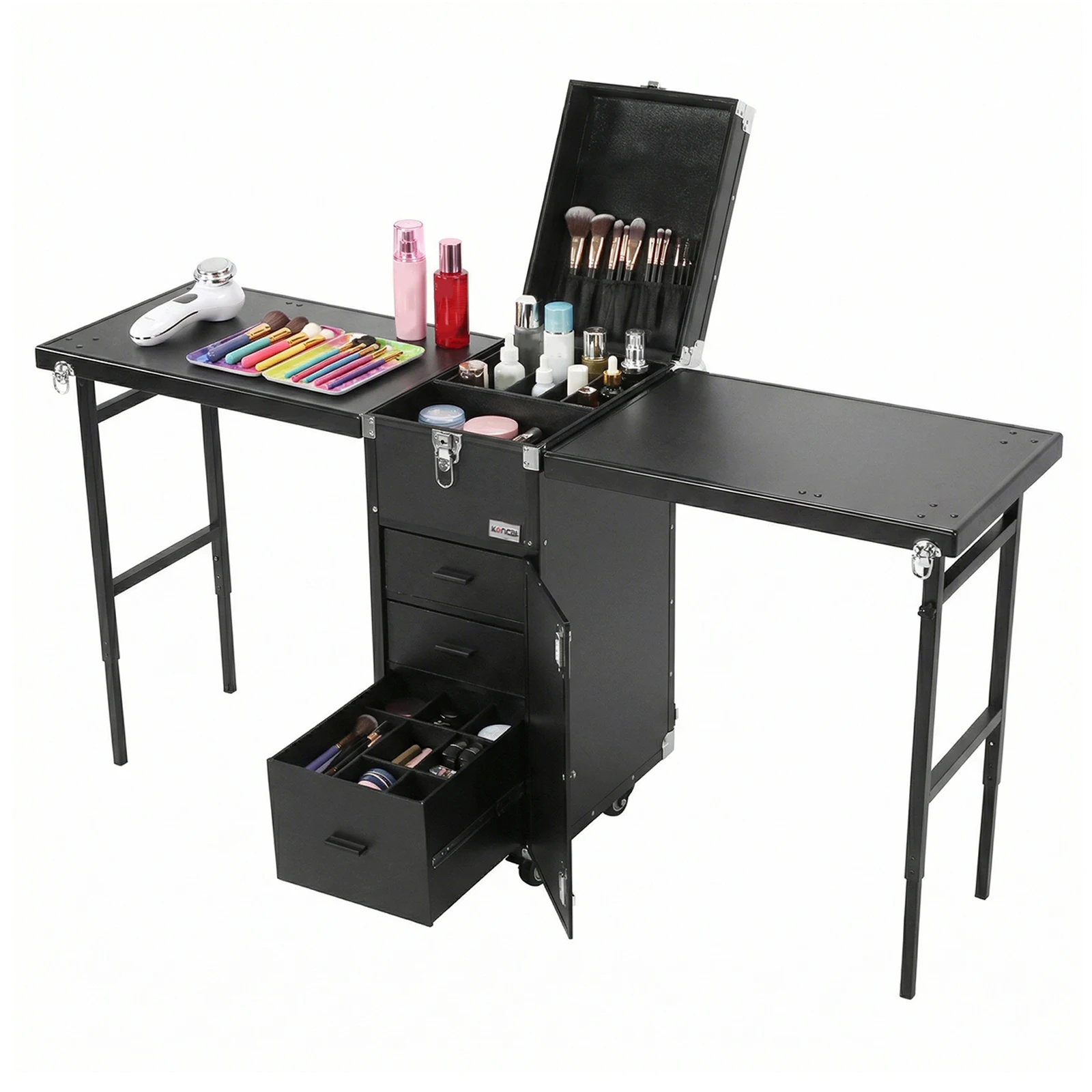 Portable Nail Table Desk with Wheel & Drawers Foldable Rolling Manicure Table Large Capacity Lockable Makeup Train Case for Nails Tech & Salon