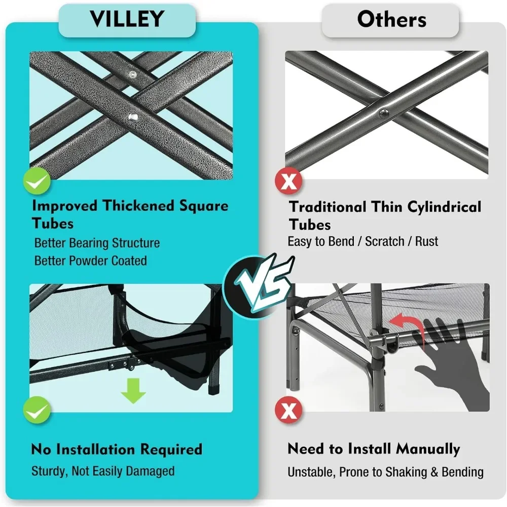 - HEAVY DUTY – Made from luxury anti-tear 900D Oxford with solid padding and waterproof PVC coating. Industrial grade anti-rust iron with powder-coated ensures a higher compressive strength than aluminum.