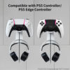 Wall Mount Controller Holder Headphone Hook Stable Controller & Headset Storage Holder Space Saving Controller Storage Organizer Compatible withPS5 Slim/PS5 Console Compatible with Playstation 5 Slim/Playstation 5