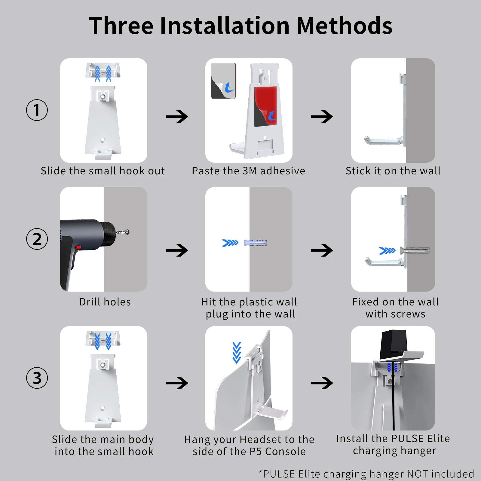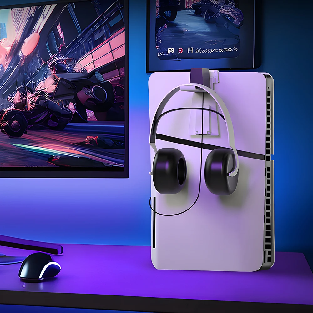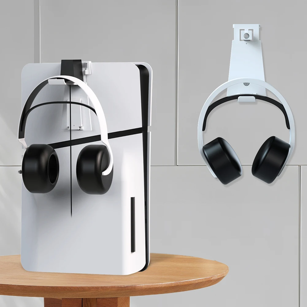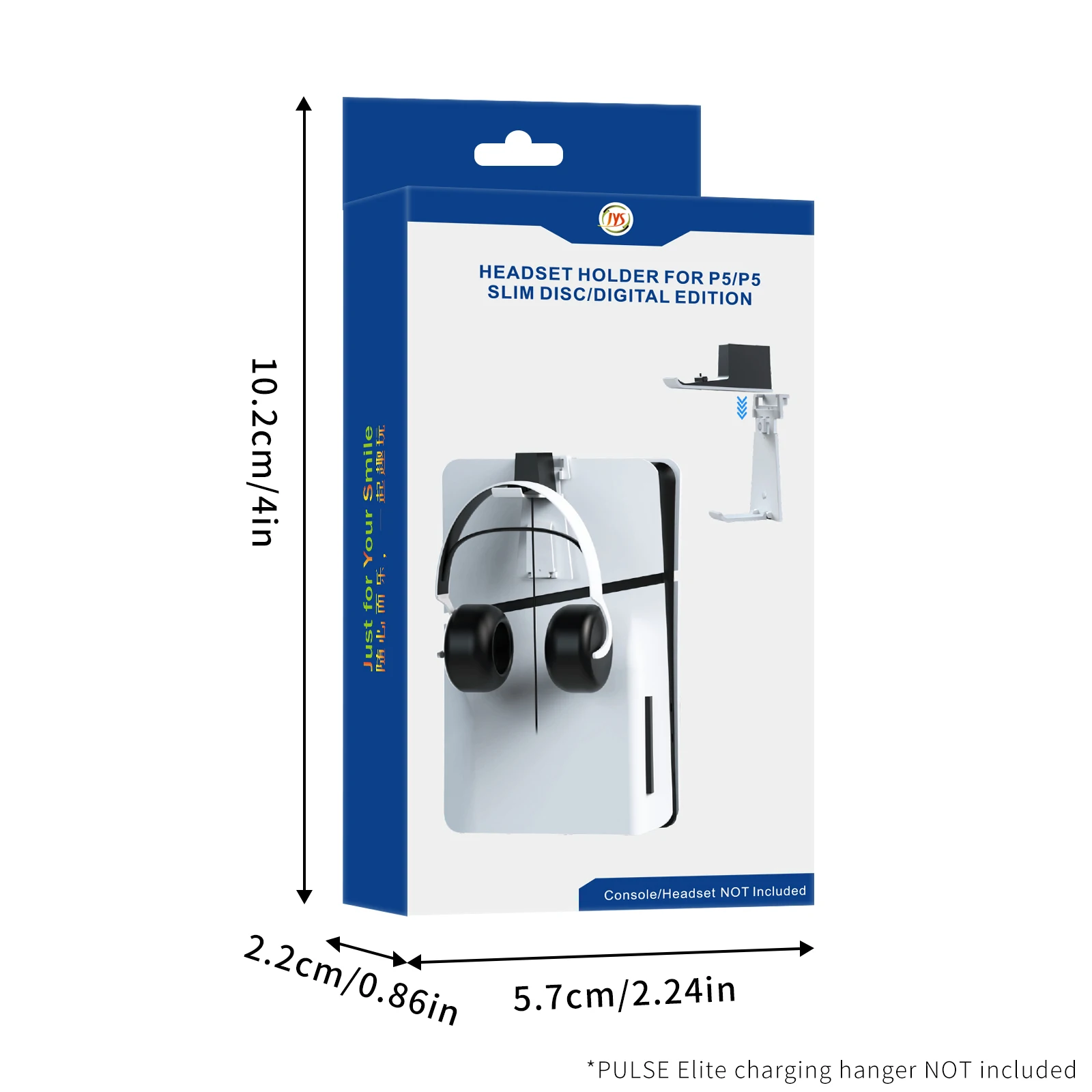 Feature: 1. Dedicated Design Compatibility: The controller holder headphone hook is specifically designed to be Compatible with PS5/Compatible with PS5 SLIM consoles & Compatible with PS5/Compatible with PS5 Edge controllers, allowing placement on either side of your TV. It also accommodates most over-ear gaming headsets, such as the Compatible with PS PULSE Elite /Compatible with PS PULSE 3D, helping you organize your gaming area efficiently. 2. Sturdy and Secure: Made from durable ABS material that resists bending, the controller & headset storage holder uses imported 3M adhesive and screws for a firm and stable attachment on most smooth surfaces. This wall-mounted holder ensures your console stays elevated, minimizing the risk of collisions or falls, thereby stabilizing and protecting your device effectively. 3. Space-Saving Solution: Featuring a detachable top hook design, the headphone hanger allows for orderly storage of controllers, headphones, and other accessories on your console. With pre-drilled screw holes on the top, it maximizes wall space utilization, eliminating clutter for a neater appearance and making it easy to locate your accessories, perfectly organizing them in any spare space. 4. Convenient Charging Integration: The gamepad controller hook is designed to seamlessly integrate with the original elite headphone charging base. Simply slide the charging base into the hook for a hassle-free charging experience, ensuring your headphones are always ready for your next gaming session without the worry of running out of battery. Immerse yourself fully in your gaming world and enjoy uninterrupted play! 5. Efficient Organization and Accessibility: As a controller storage organizer, it not only enhances the aesthetic appeal of your gaming setup but also ensures your gaming accessories are neatly arranged and easily accessible. This design philosophy allows you to fully immerse in gaming sessions with everything you need within reach, fostering an enjoyable and organized gaming environment. Specification:Origin: Mainland China