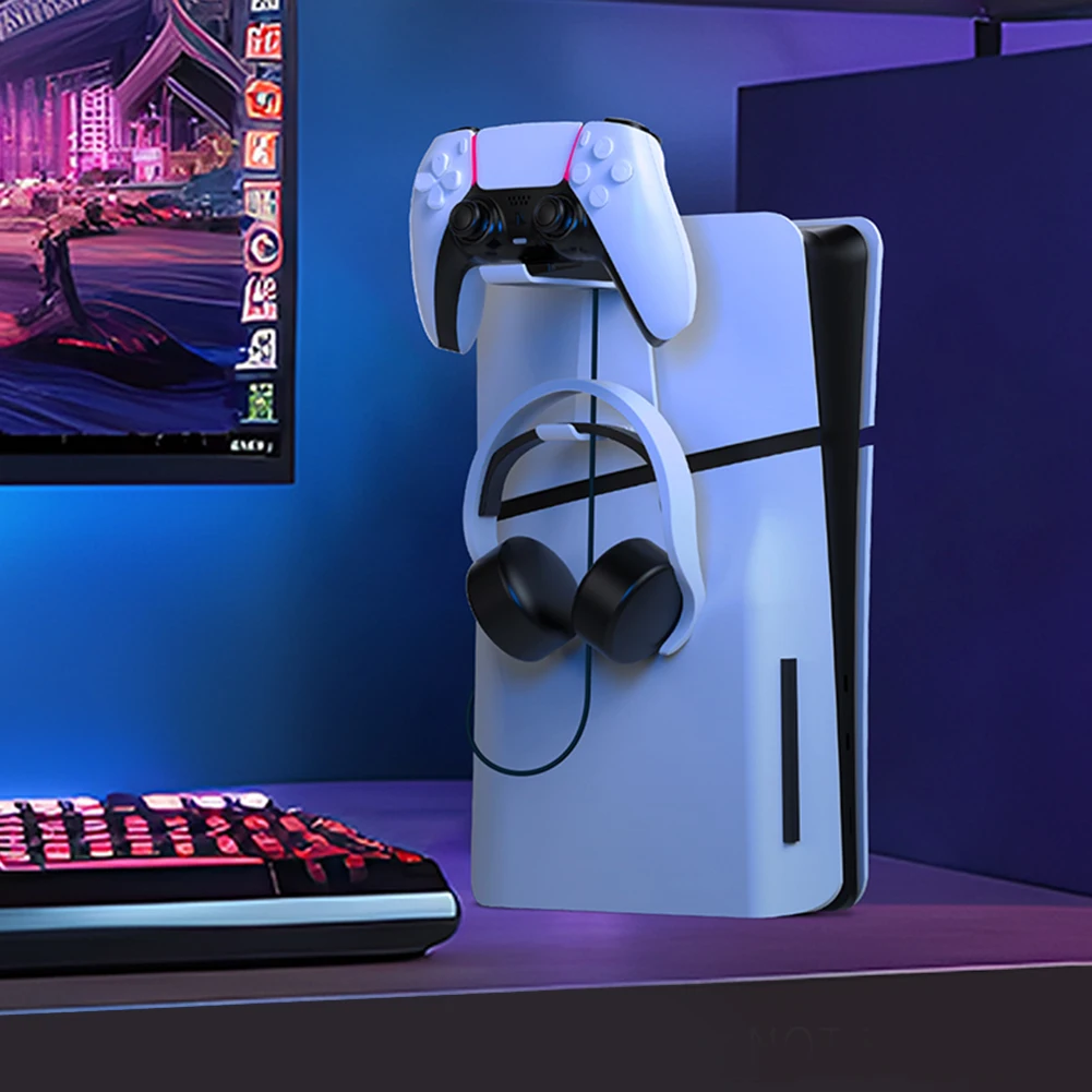 Wall Mount Controller Holder Headphone Hook Stable Controller & Headset Storage Holder Space Saving Controller Storage Organizer Compatible withPS5 Slim/PS5 Console Compatible with Playstation 5 Slim/Playstation 5