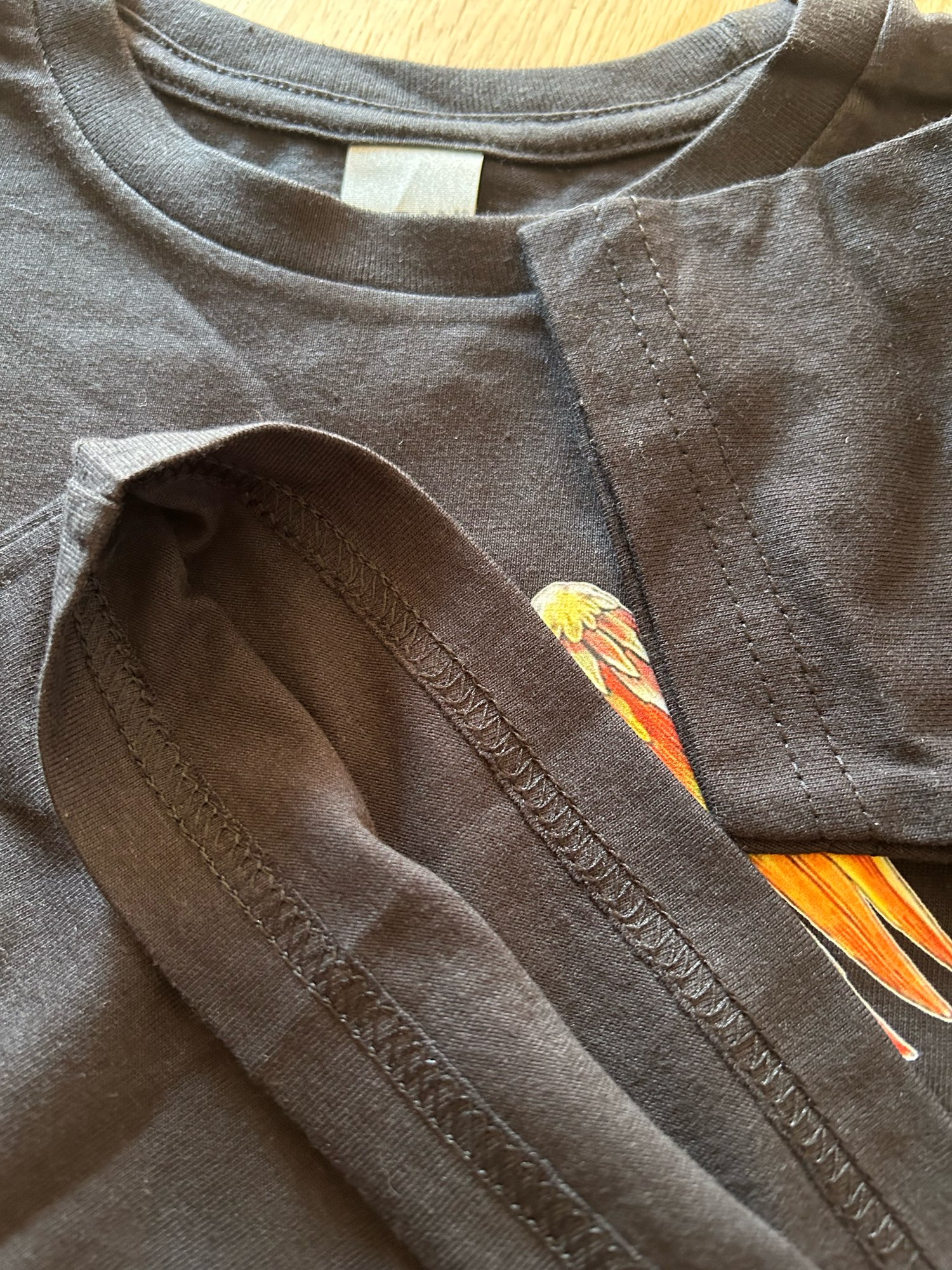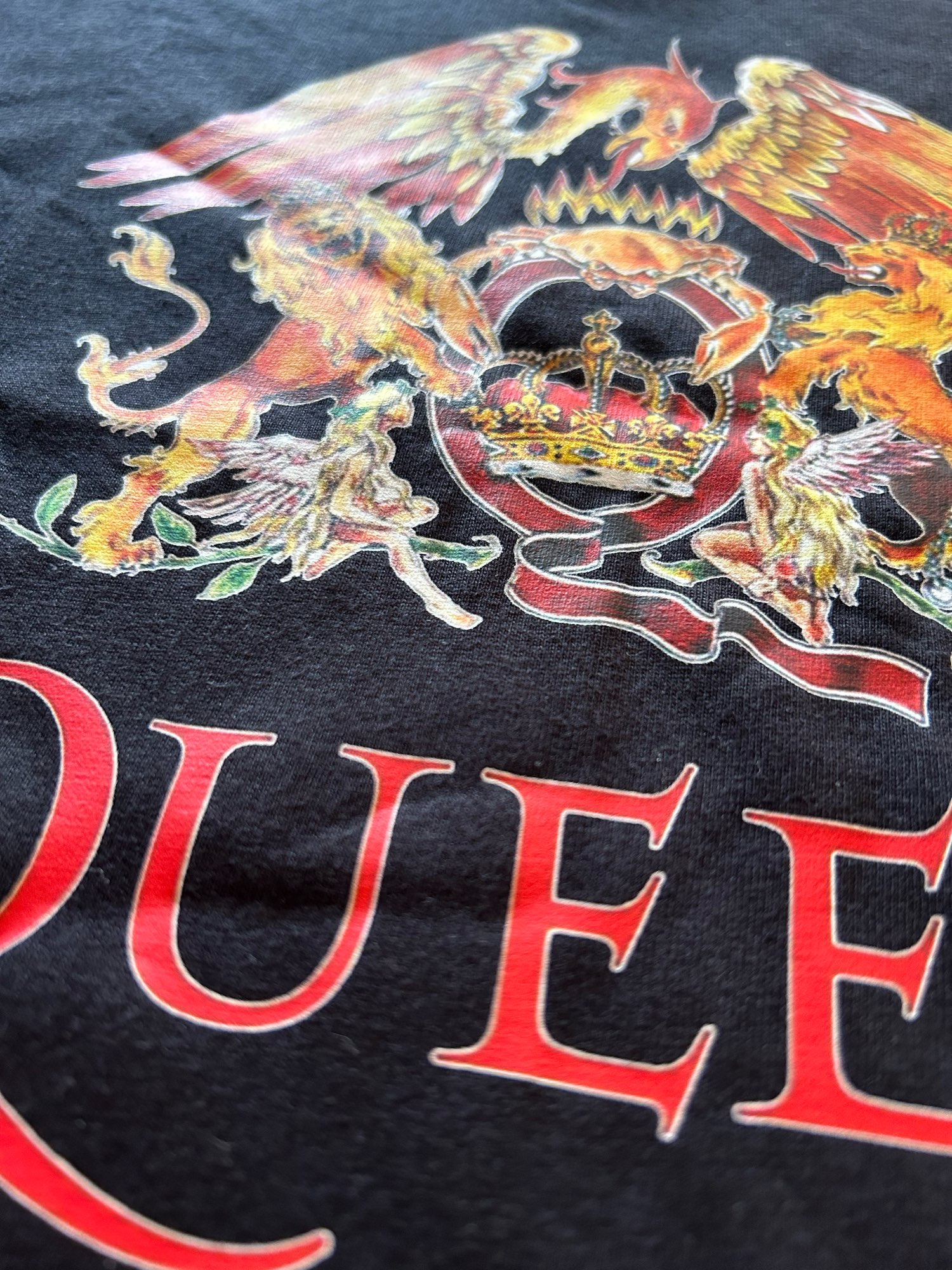 I was surprised by the good quality of the T-shirt and the print. Quality is like any business. Is cotton. I have taken for my daughter who is 1.22cm, she is thin and the size "S" is a little long and loose but it suits her very well, "oversize" style. If you are looking for a good quality Queen t-shirt, I recommend it 100%.