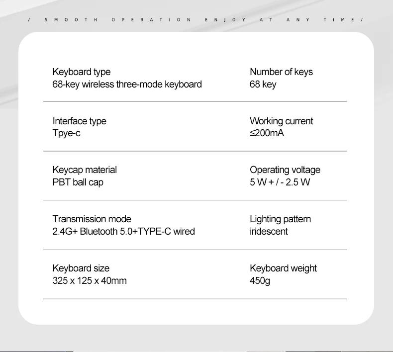 PBT Keycaps & Backlight: Durable, high-quality PBT keycaps with customizable rainbow RGB backlighting for a dynamic typing experience.