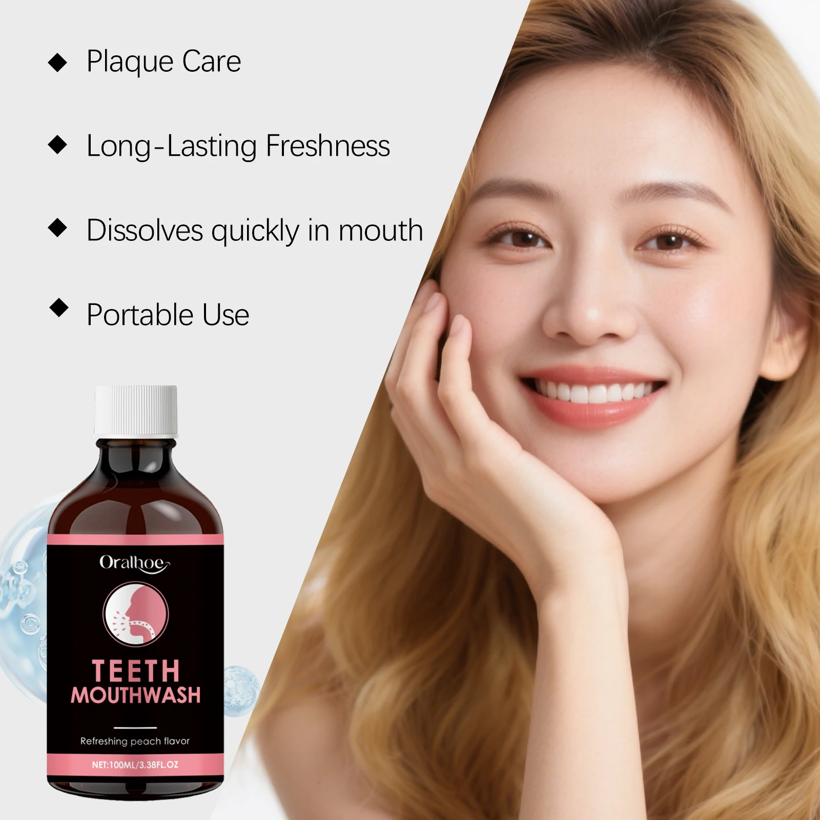 2.Enriched with rich peach extract, this mouthwash not only cleanses your mouth but also leaves a delightful fruity flavor that enhances your oral hygiene routine.