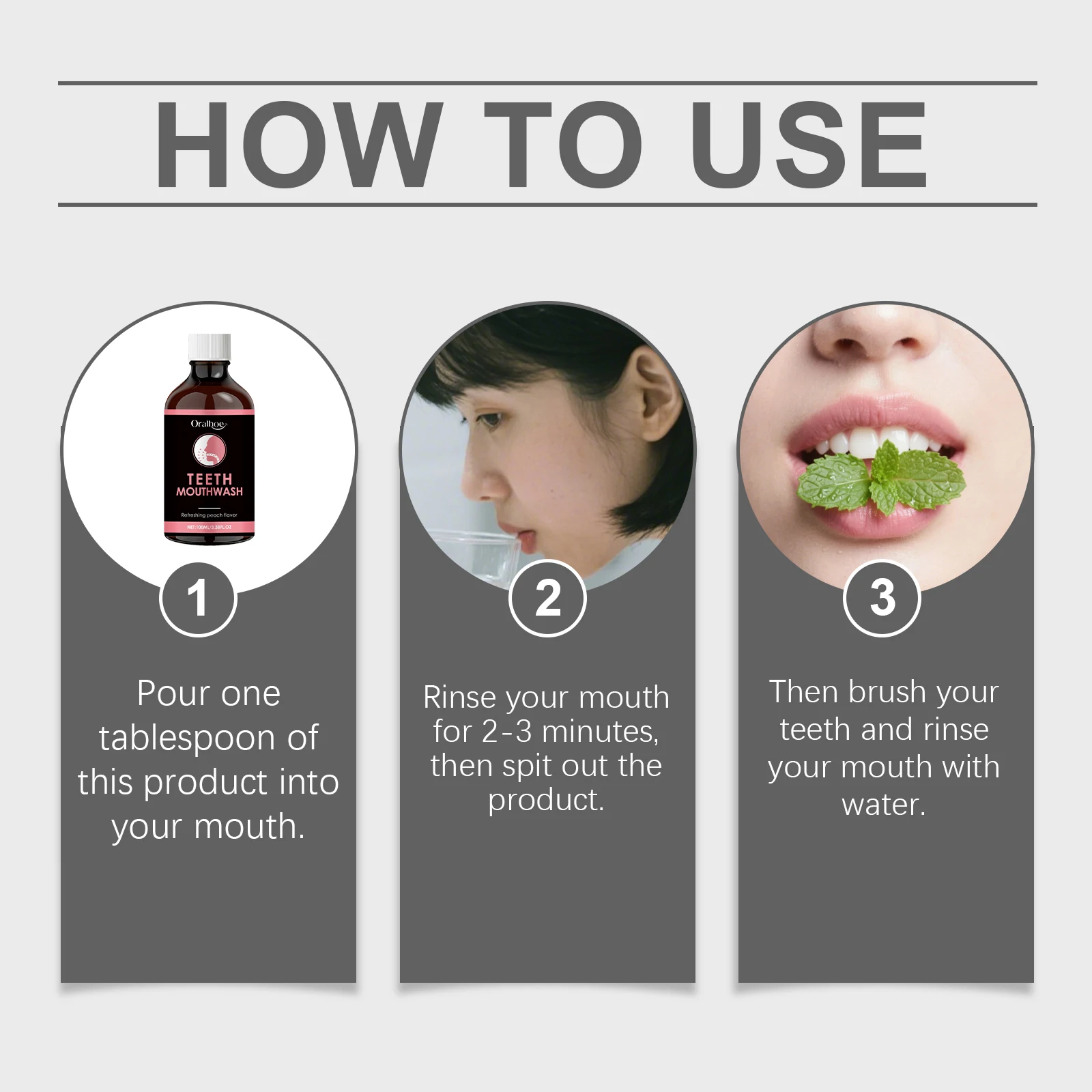 2.Rinse your mouth for 2-3 minutes, then spit out the product.