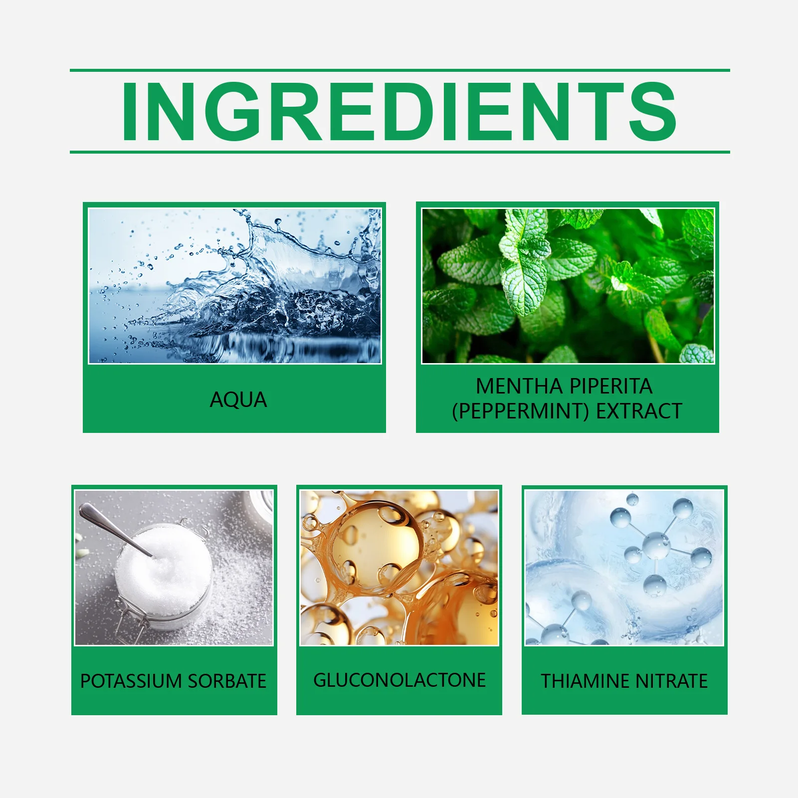 Ingredients: Water, peppermint extract, potassium sorbate, gluconolactone, thiamine nitrate.