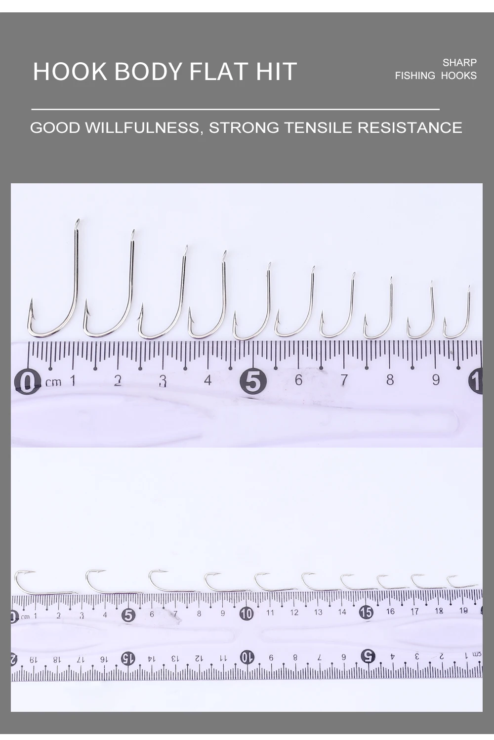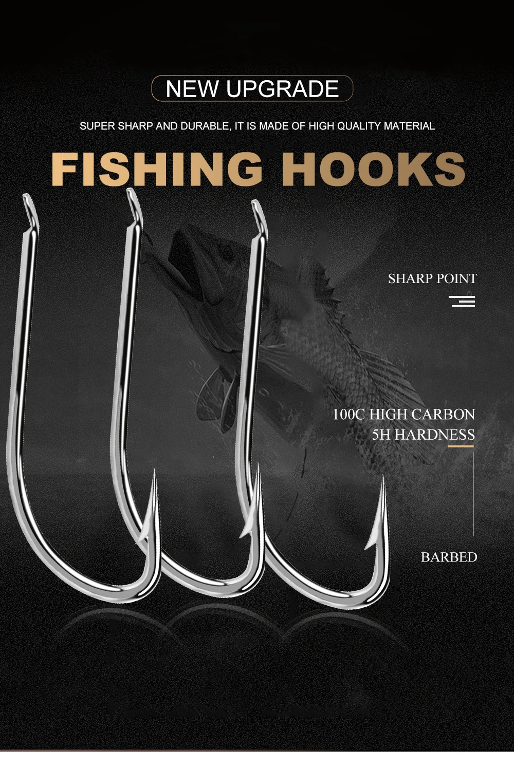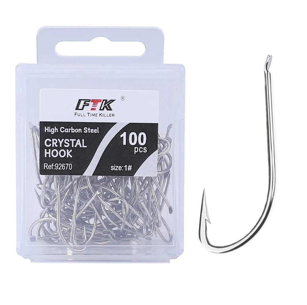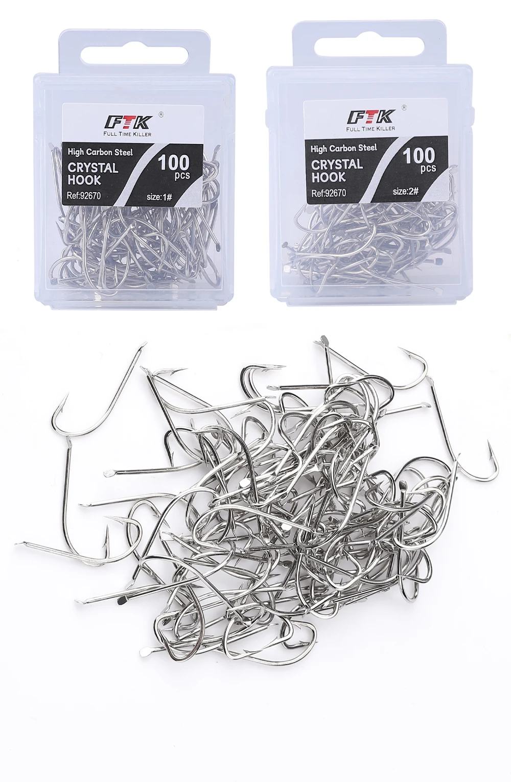 FTK 100pcs/ Box Long Shank Fishing Hook 1#-12# Fish Hooks High Carbon Steel Sharp Barbed Bait Hook Trout Bass Fishing Hooks