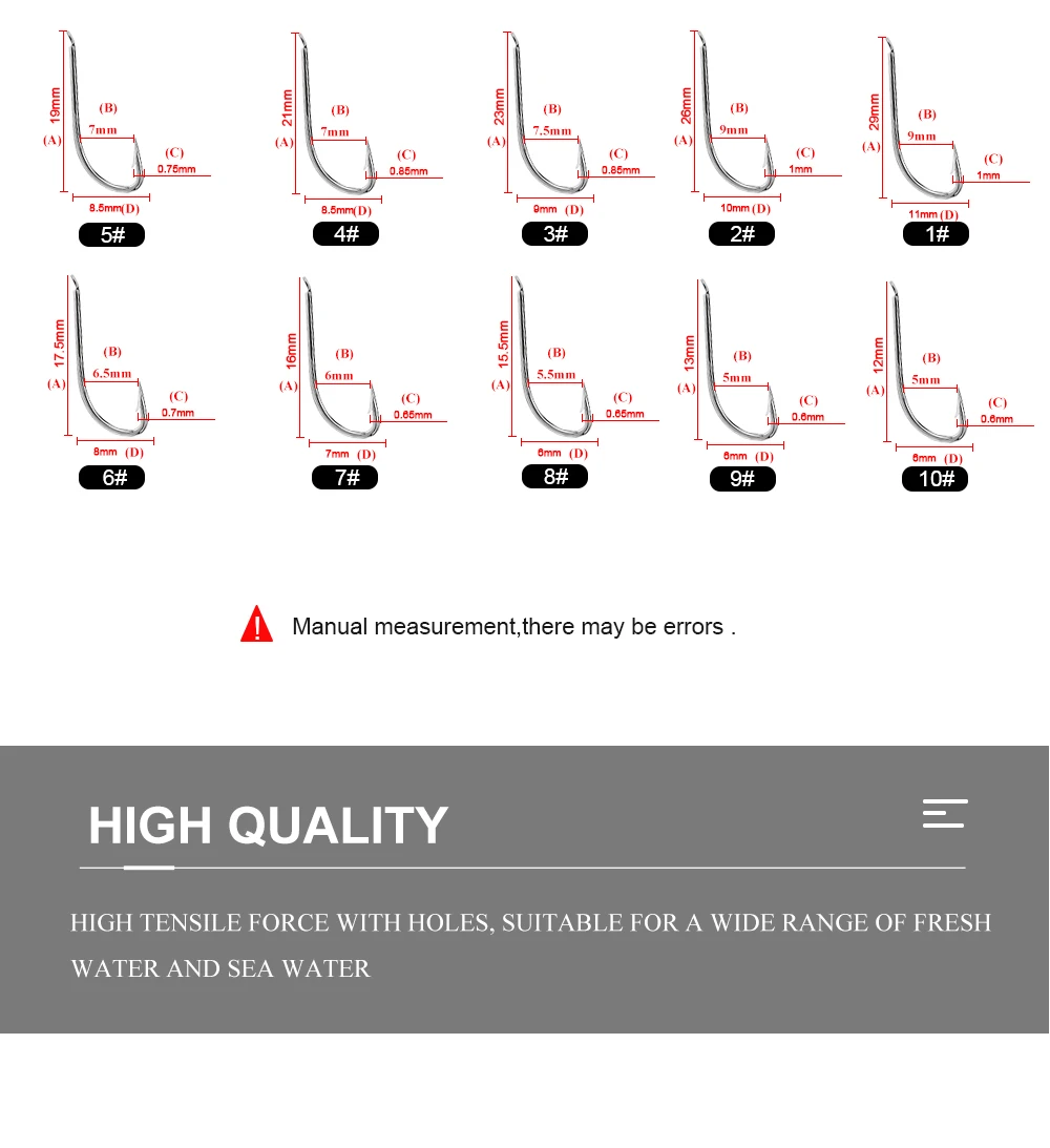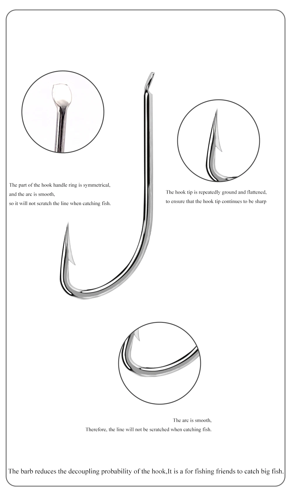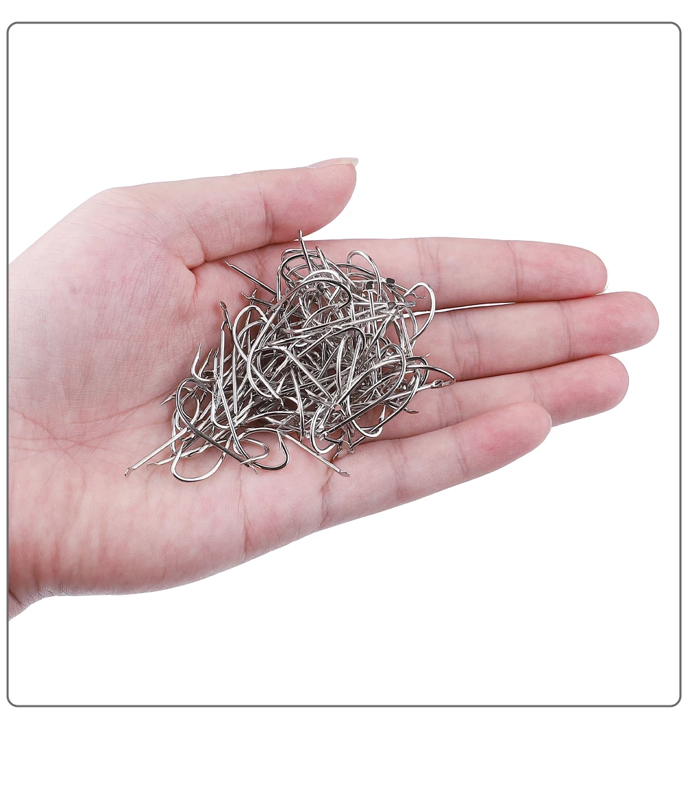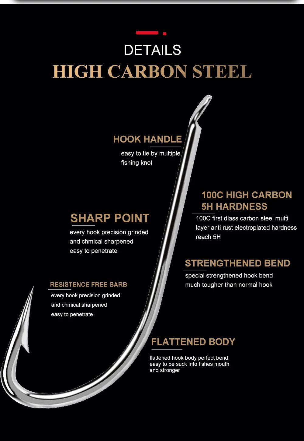 FTK 100pcs/ Box Long Shank Fishing Hook 1#-12# Fish Hooks High Carbon Steel Sharp Barbed Bait Hook Trout Bass Fishing Hooks