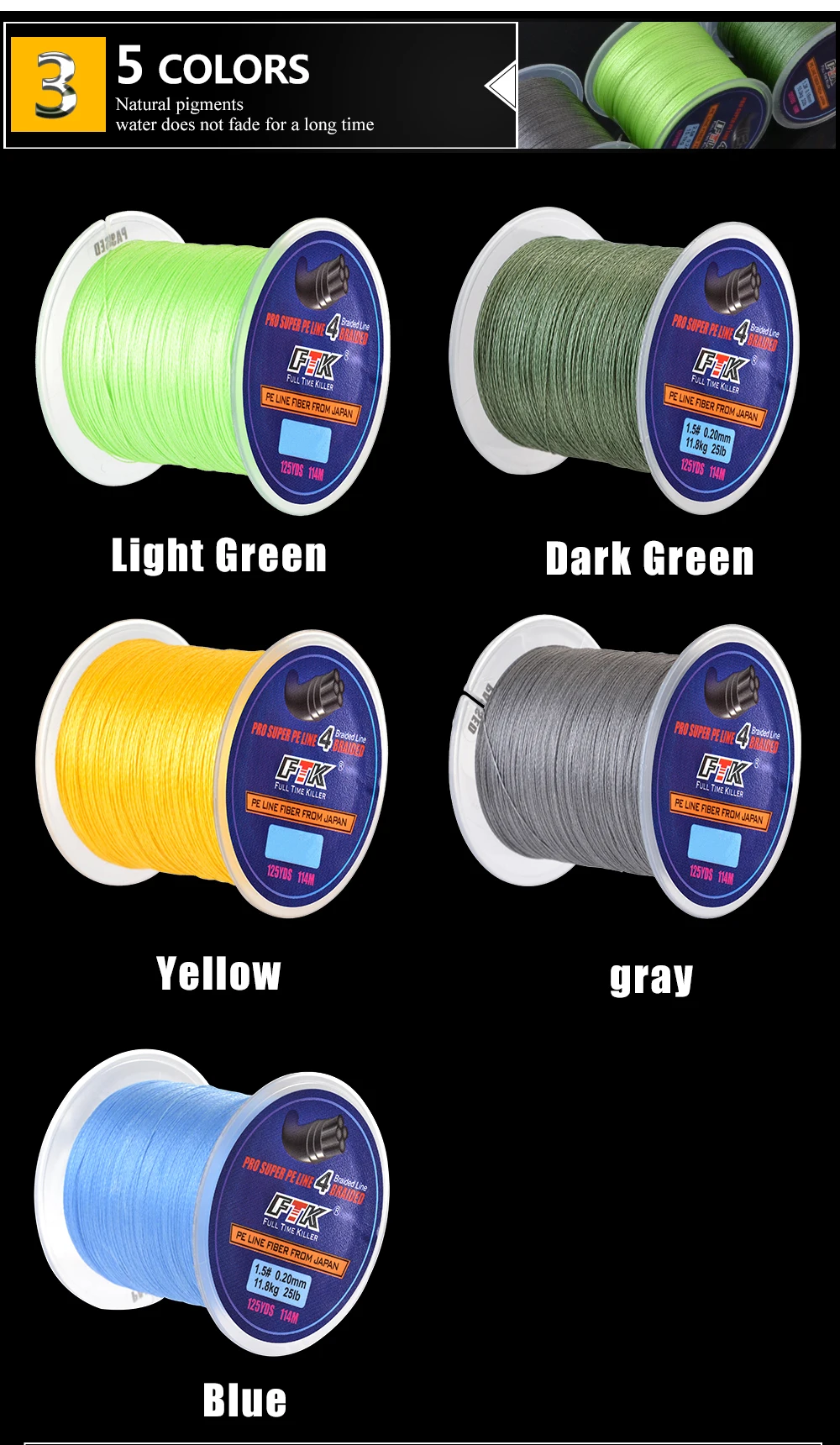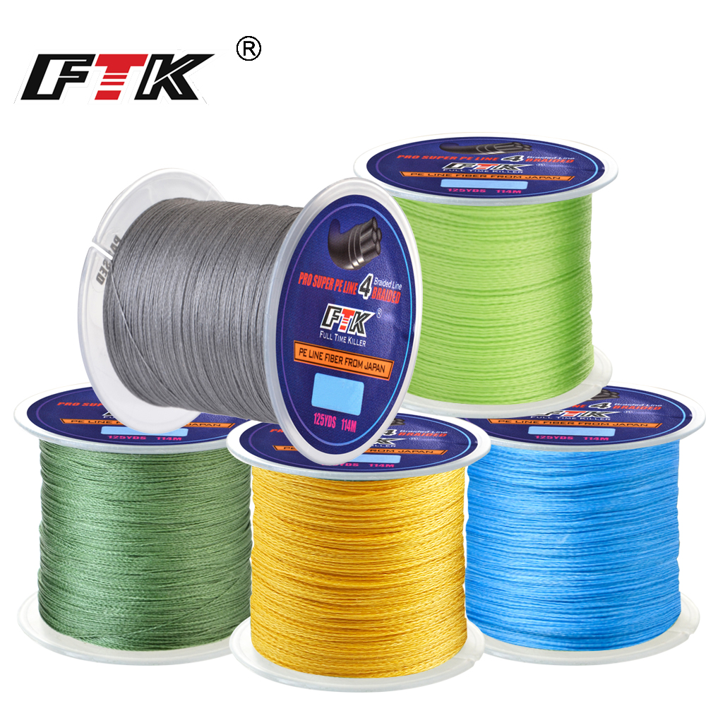 FTK 114M 4 Strands PE Braided Wire Fishing Line 125Yards 0.10mm-0.40mm 8LB-60LB Incredibly Strong Multifilament Fiber Line
