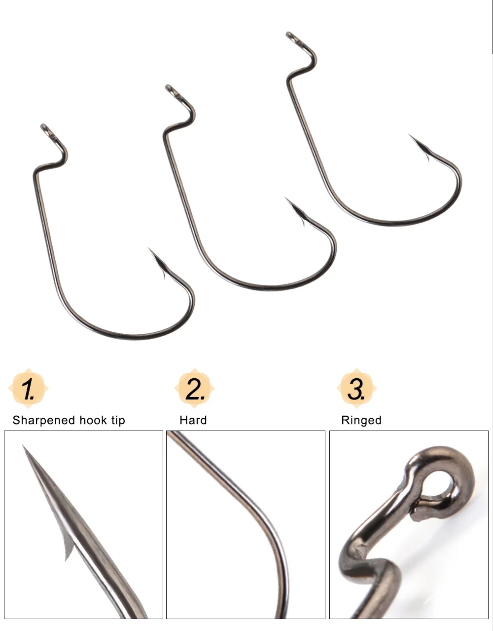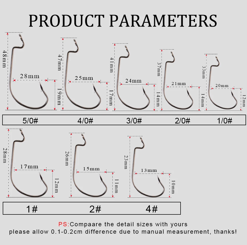 FTK 12-20PCS Offset Fishing Hooks Soft Worm Lures 5/0#-4# High Carbon Steel Ringed Crank Fishhooks Fishing Tackle