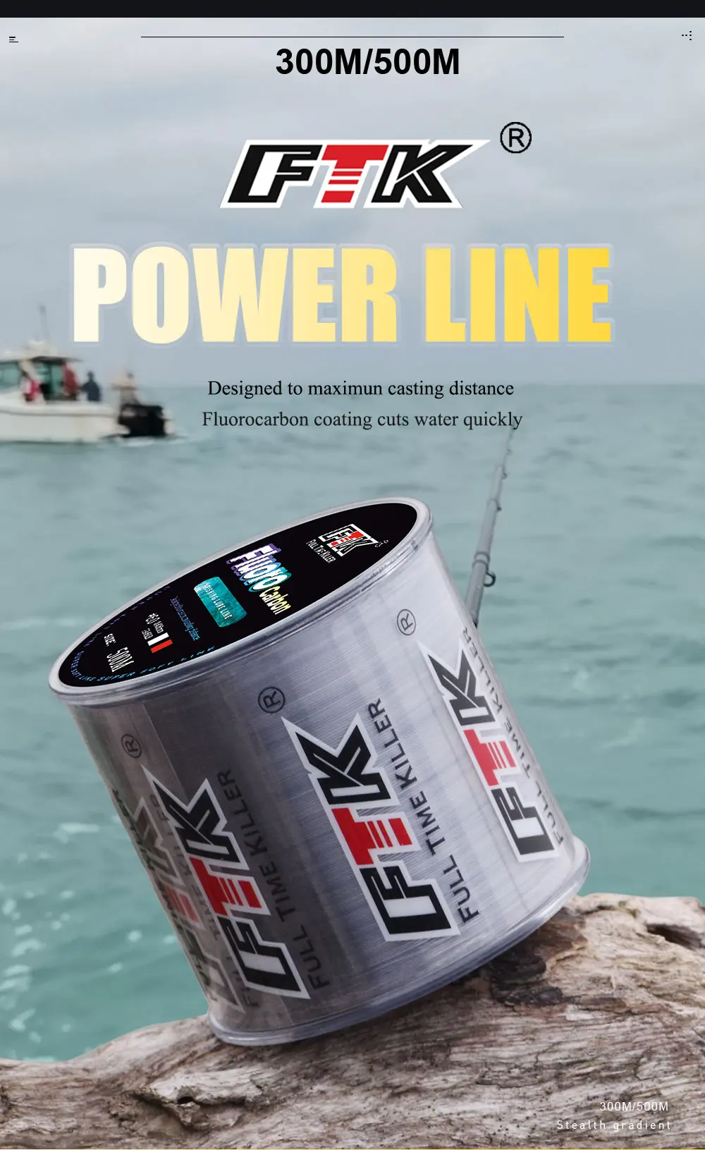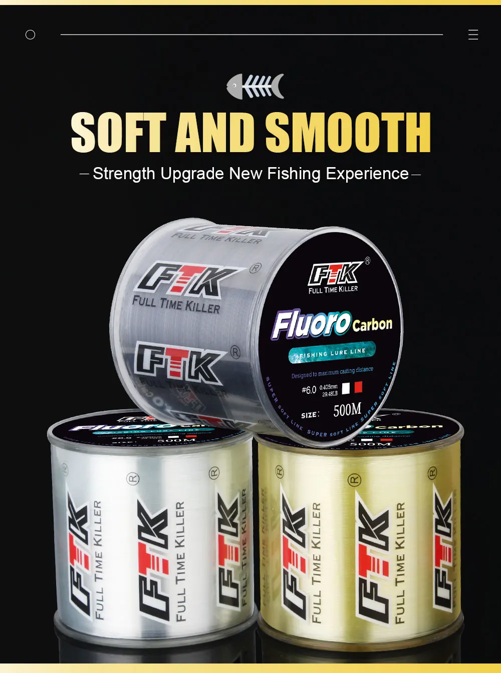 FTK Fishing Line 300M / 500M Carbon Fiber Coating Leader Line 0.14-0.5mm 1.88-15.6kg Wearable Fluorocarbon Super Strong Spotted