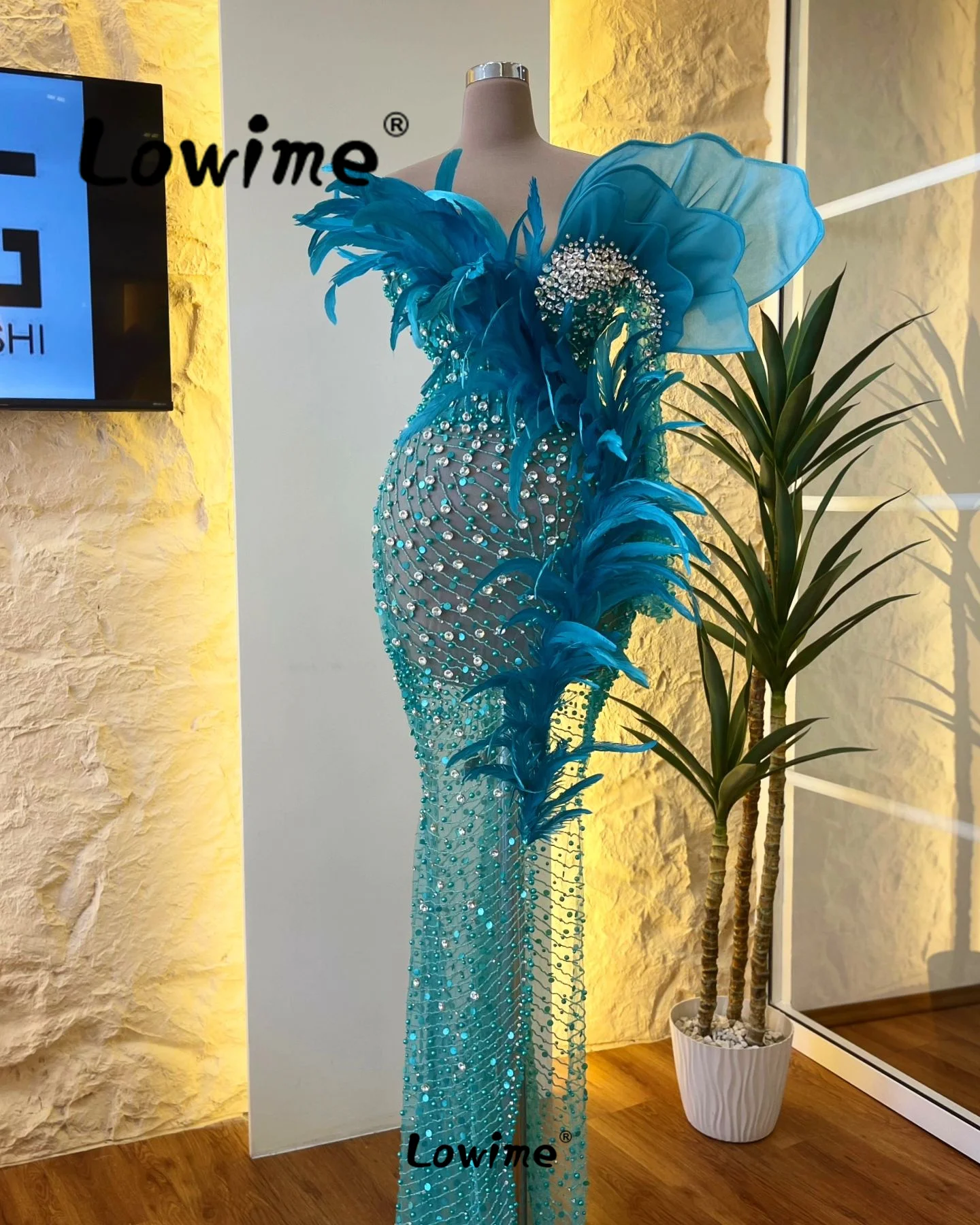Full Beaded Crystals Luxury Evening Dresses Robe Feathers One Shoulder Mermaid Prom Dress 2024 Abendkleider Wedding Party Dress