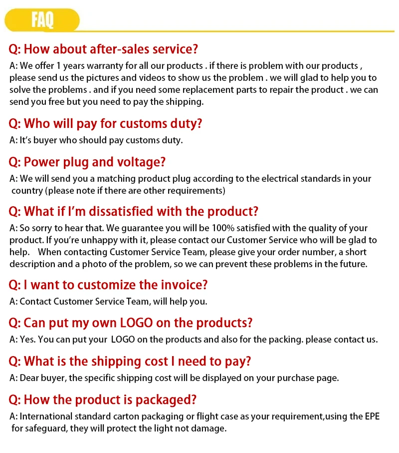 Thank you for choosing our stage lighting products! Please note that due to the restrictions of international logistics and related policies, the following products cannot be returned from abroad. Please read our policy carefully before purchasing: