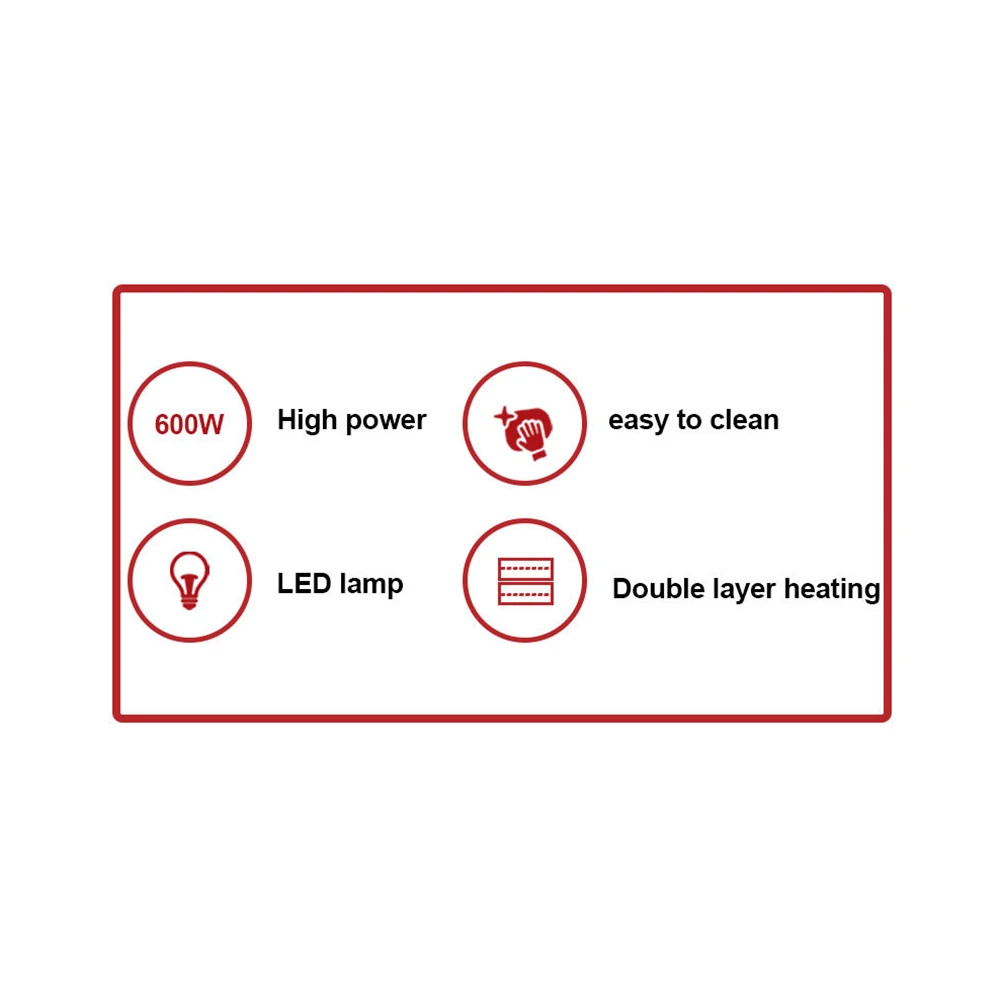 3. 600W high power: high-power double-sided heating, instant heating, monitoring indoor environment, locking in the original flavor of ingredients