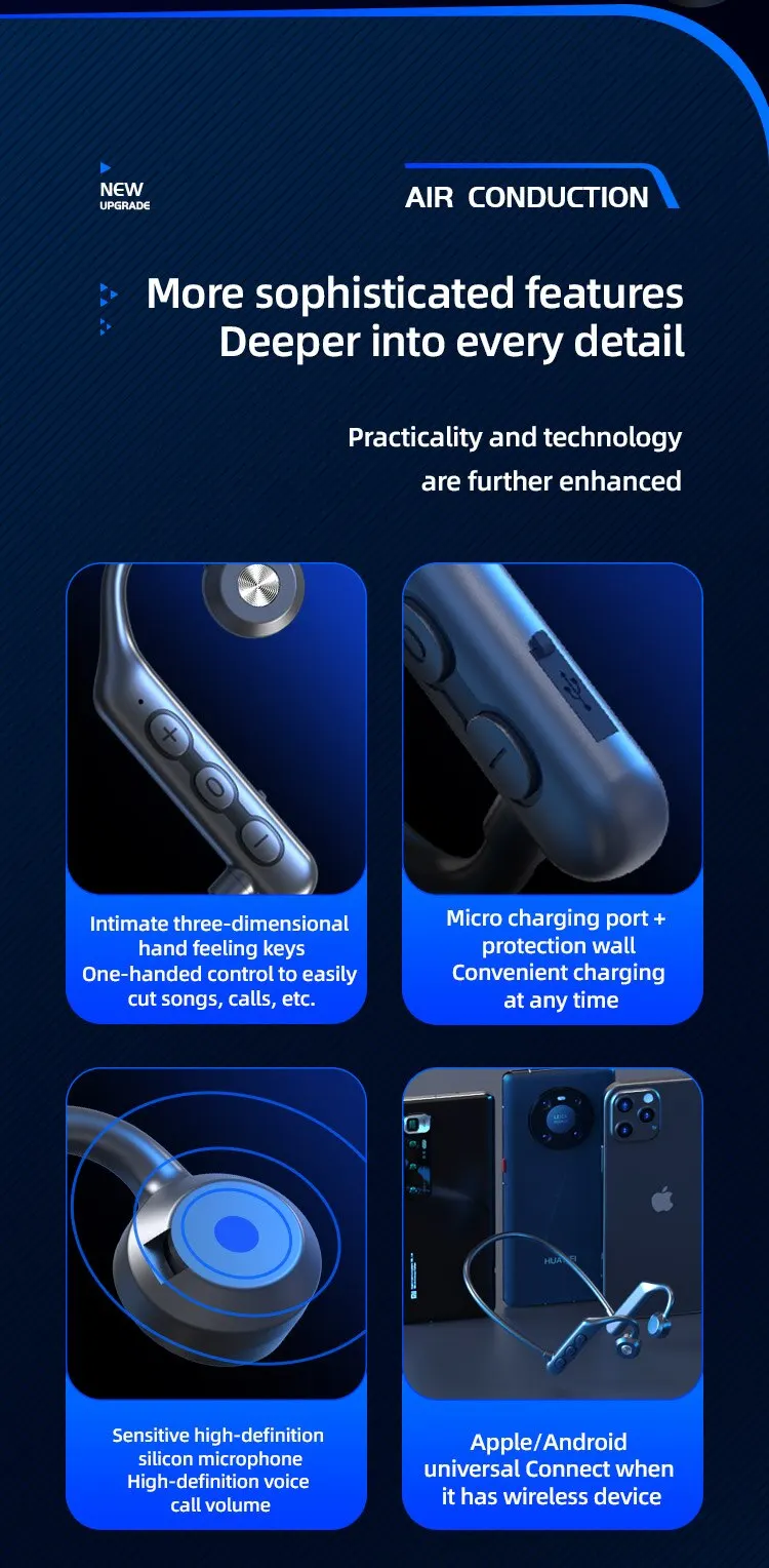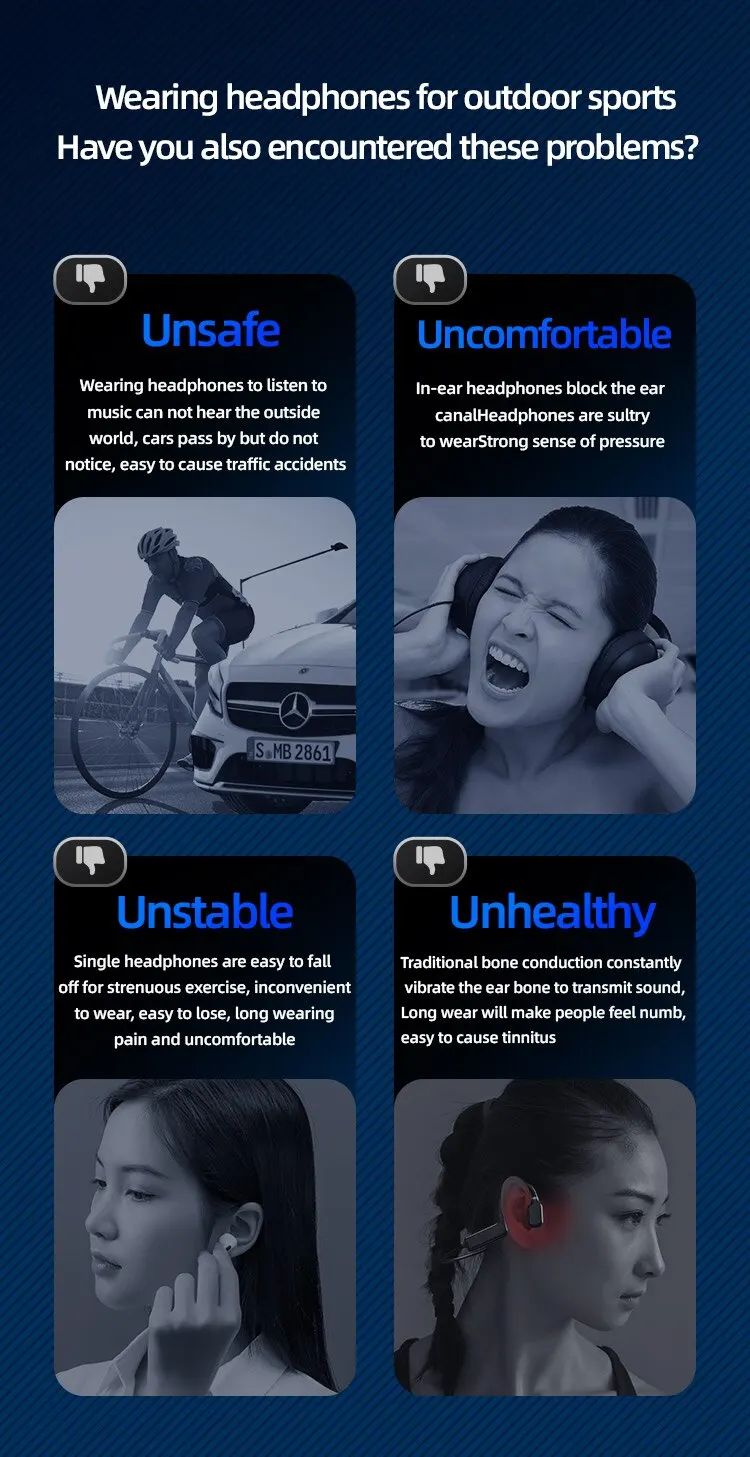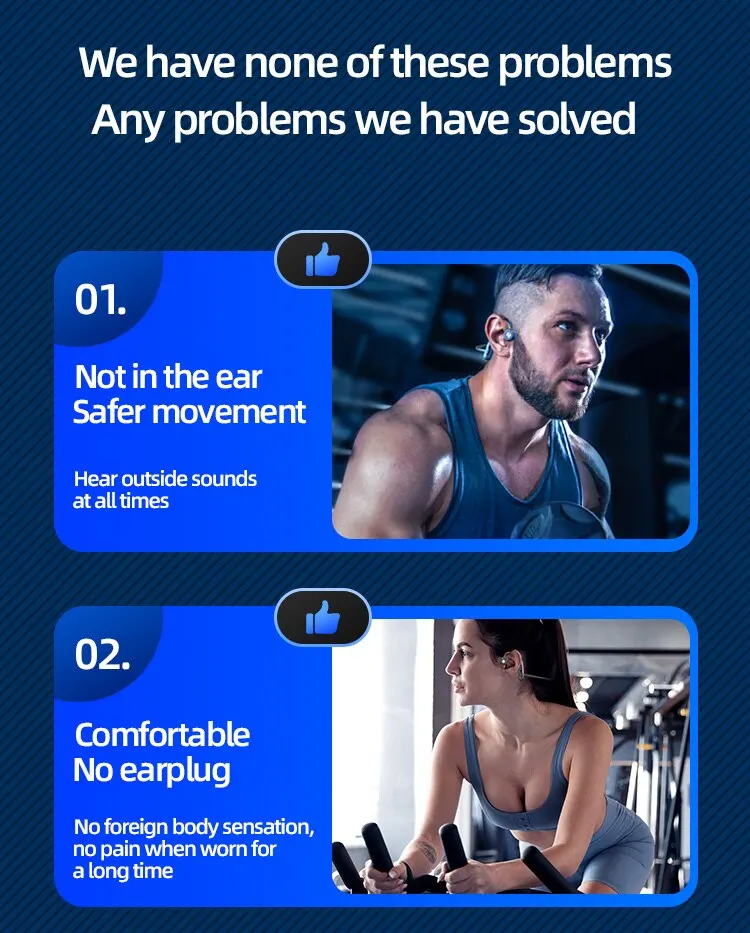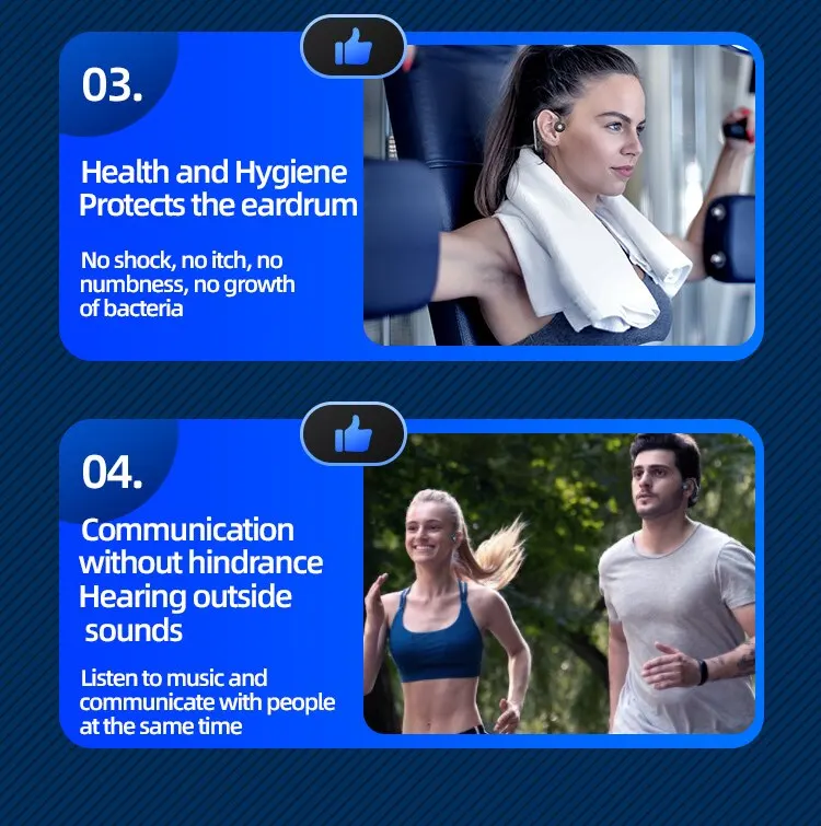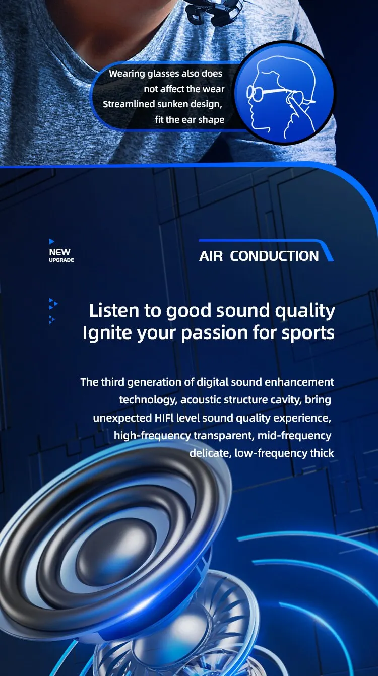 • Bone Conducting Technology :Experience crystal-clear sound quality with the bone conducting technology that allows you to hear your music without blocking out external noise.