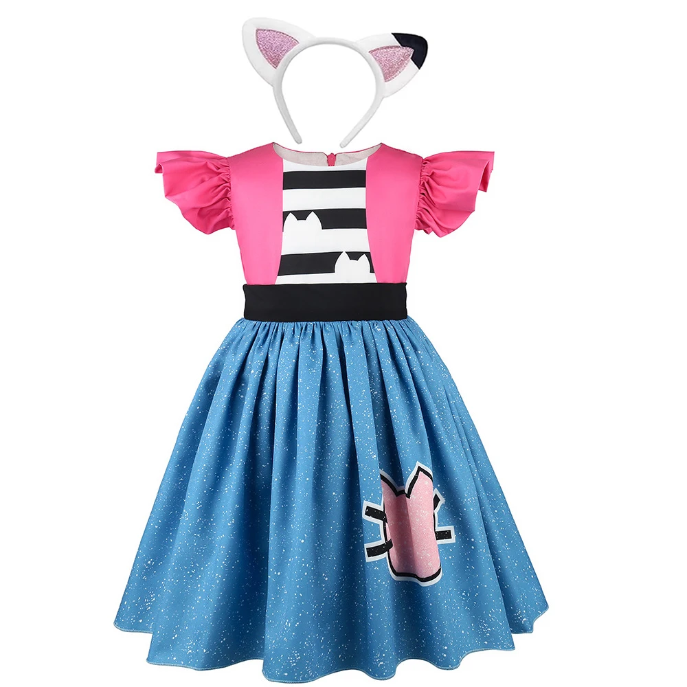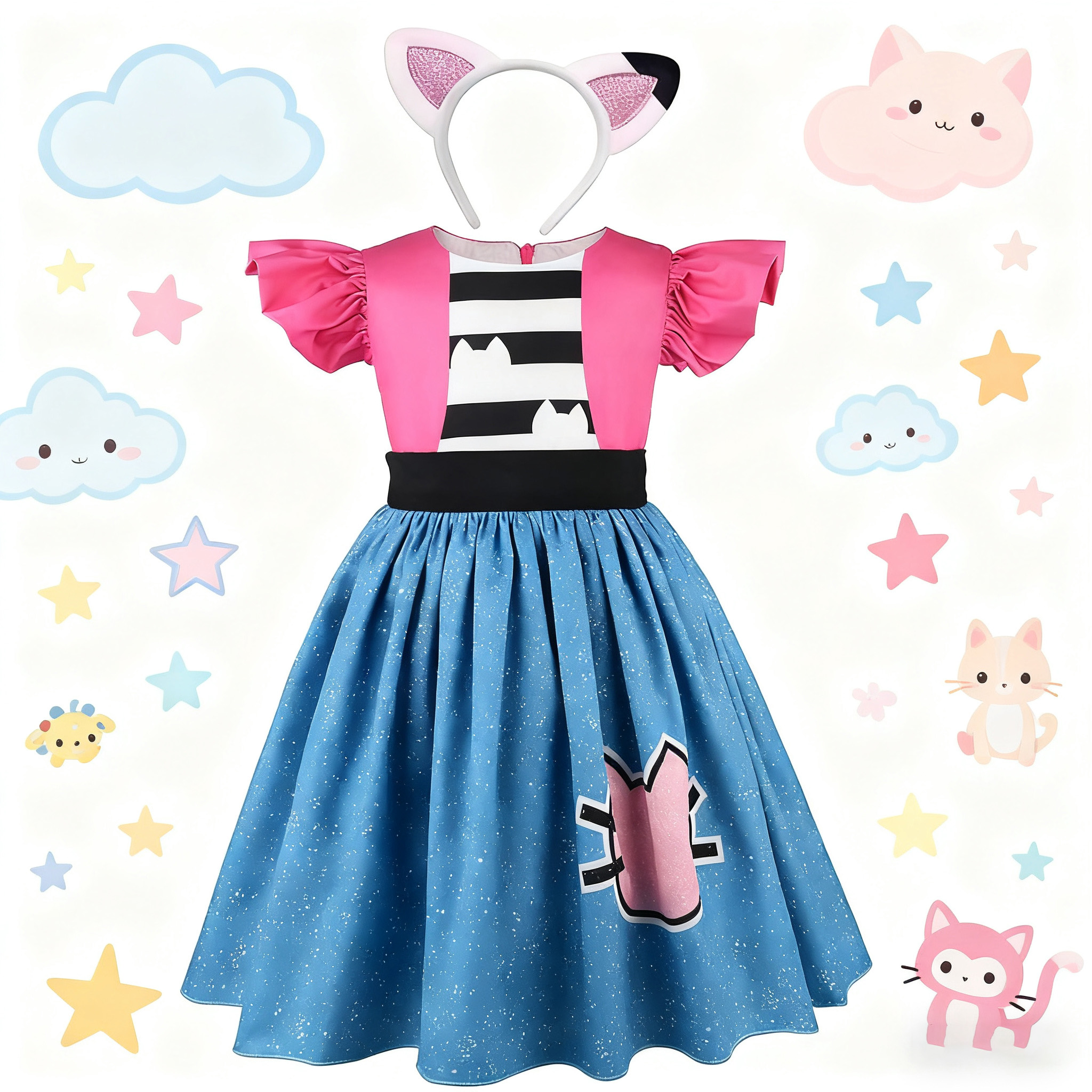 Gabby’s Dollhouse Clothes girls Gabby Cat Dress Girls Cute Casual Dresses & Headband Children Kids Flying Sleeve Princess Dress