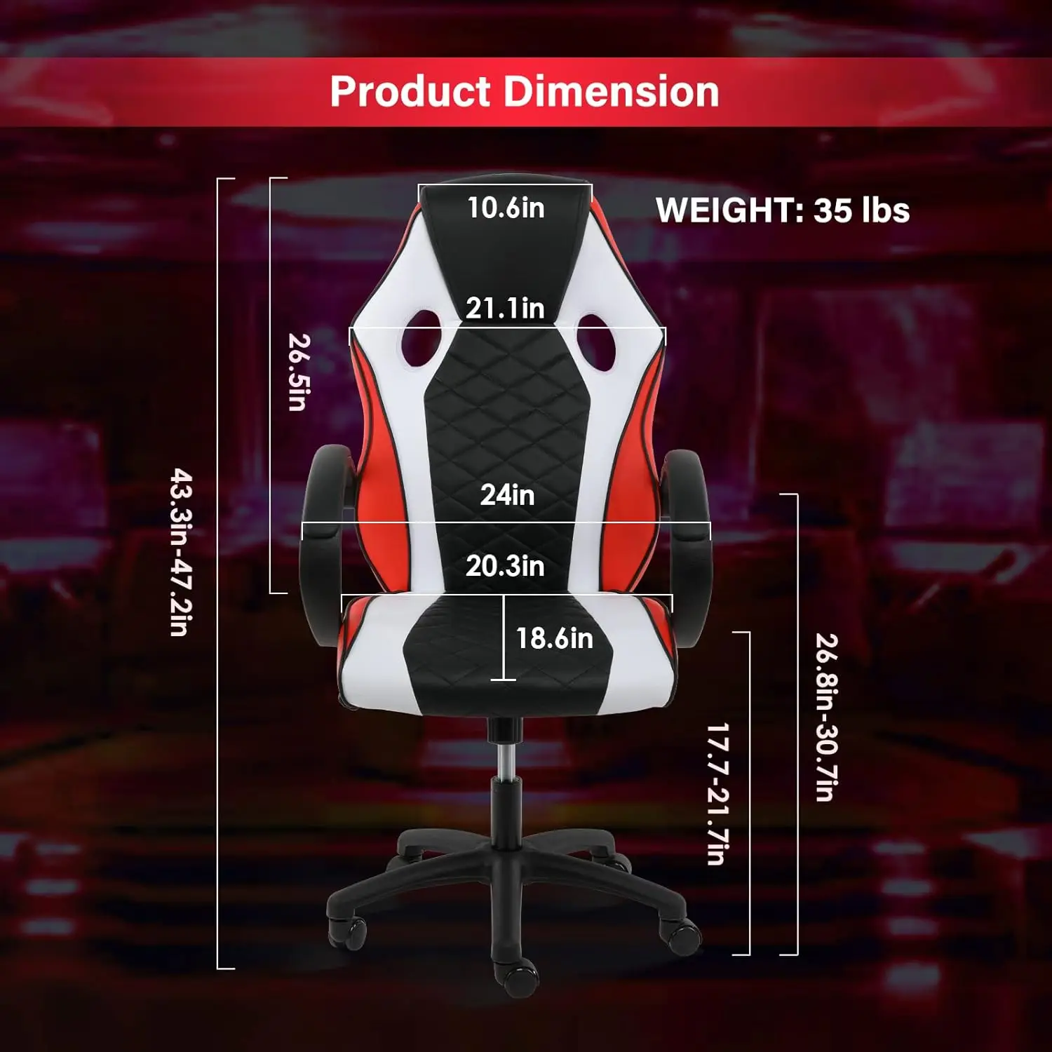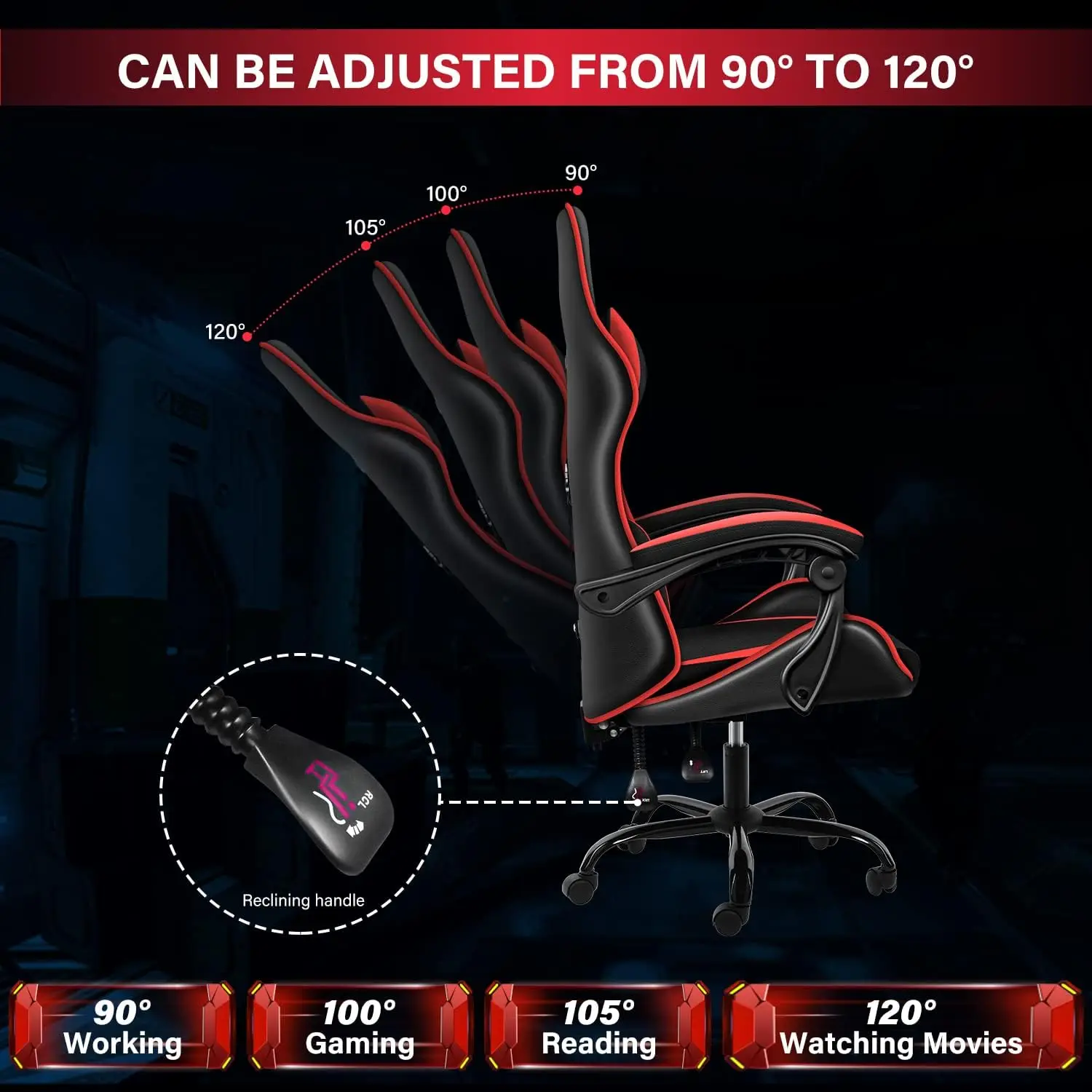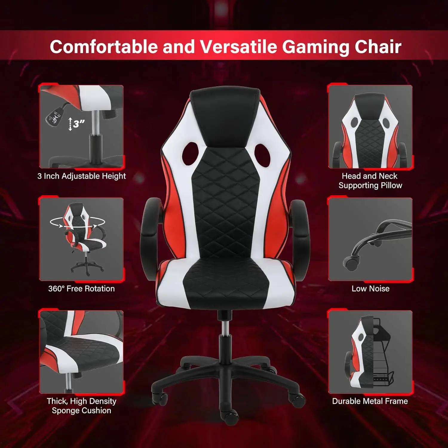 - [Racing Style] This gaming chair is wrapped in black and red PVC and carbon-fiber in a sleek, race-inspired shape, providing immersive gaming experience.