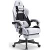 - [Easy but Abundant Functions] This gaming chair has a reclining function of 90°-135°. It is also combined with the footrest, it can be used for gaming, working and napping. The waist cushion with massage and headrest can help user accelerate recovery from fatigue, and relieves the burden on the waist when sitting for a long time.