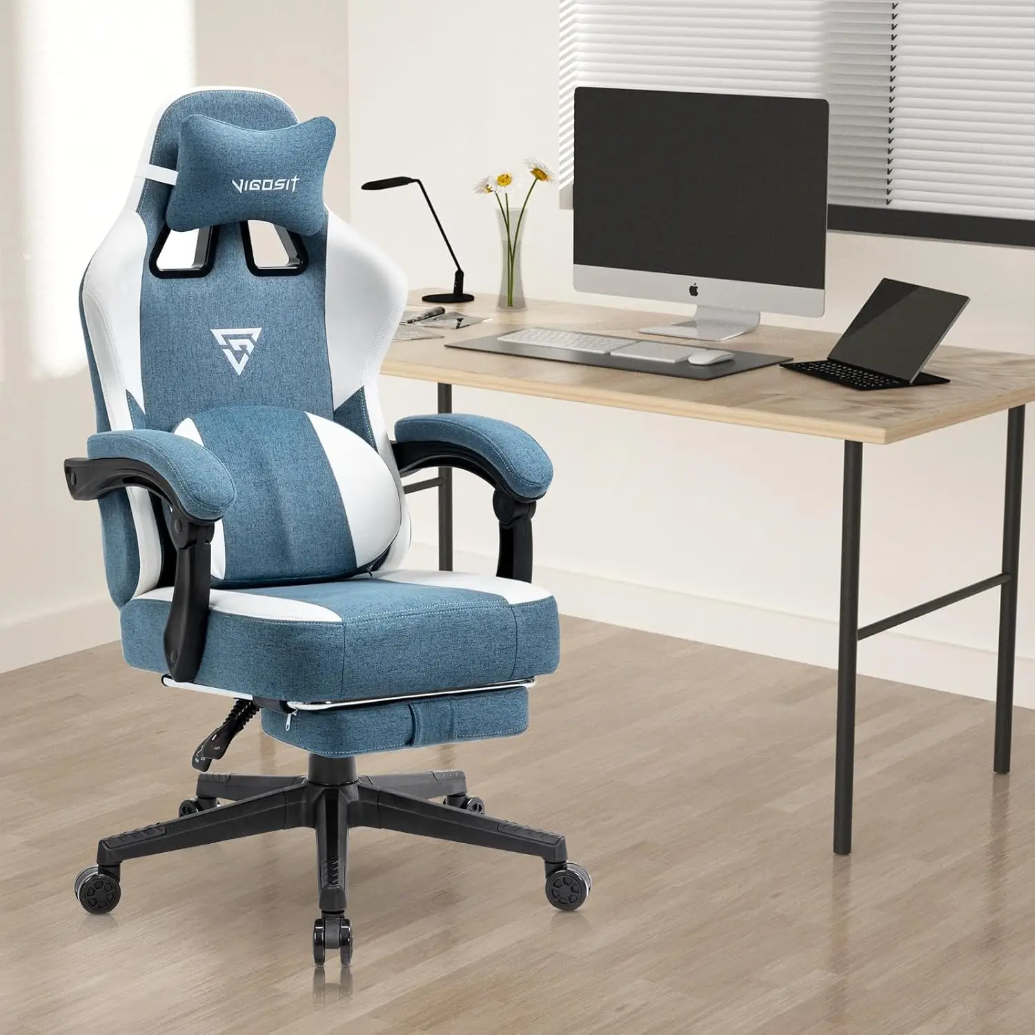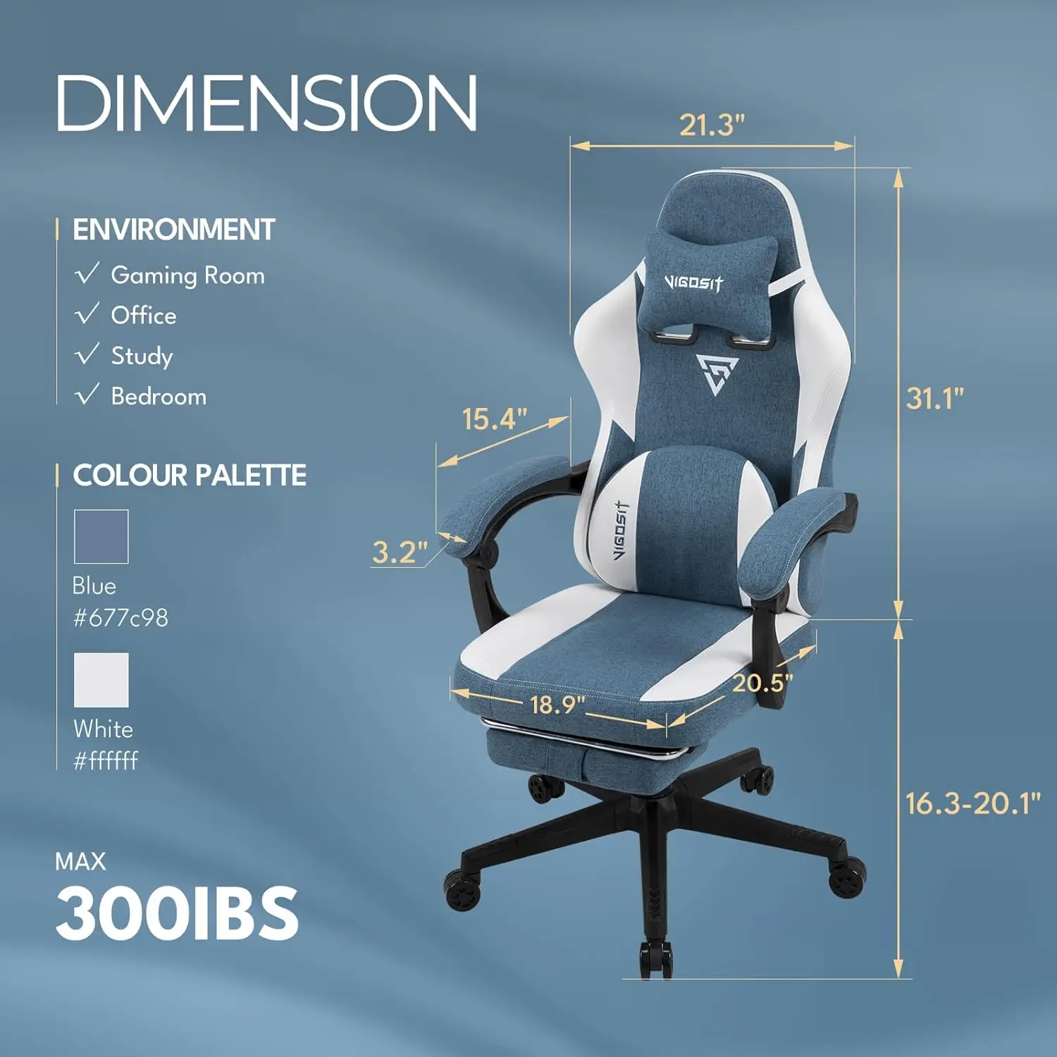 - 【Comfortable Free Cushion】Our gaming chair for adult is composed of high-quality pocket springs and sponges. Each spring provides good support and rebound by adapting to weight pressure, allowing you to enjoy a sofa-like luxury experience. Different from other gaming chairs, this gaming chair for heavy people uses a wide wingless cushion design, giving sillas gamer plenty of space to stretch legs and say no to squeezing and constriction.