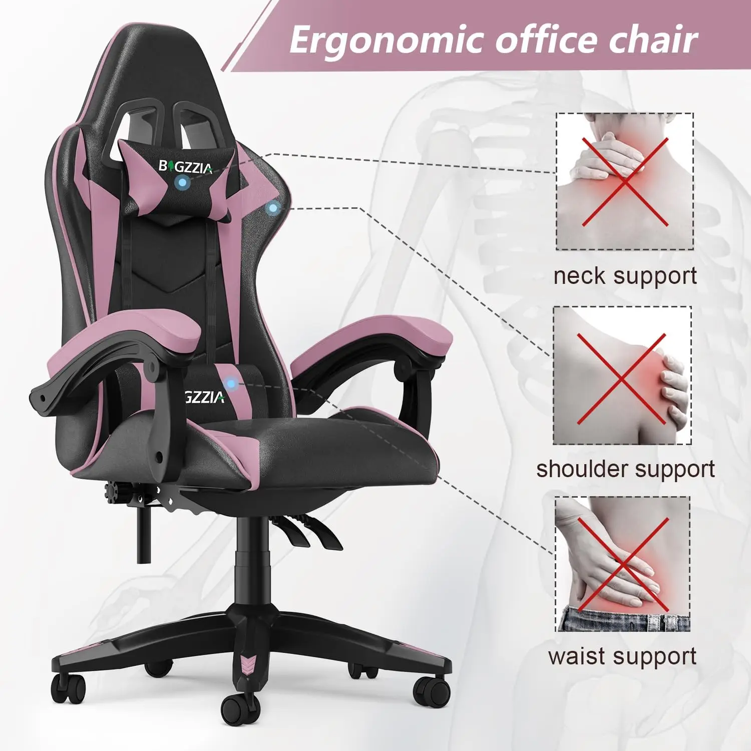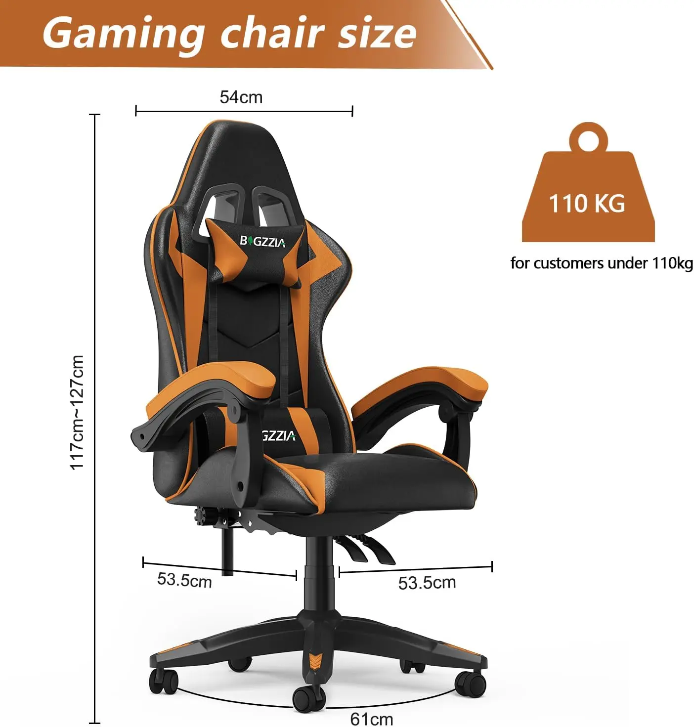 - 【Feel the Difference】Bigzzia Gaming Chair has the same wrapping feeling as a racing chair, seamlessly fitting your body curve. The strong integrated metal frame, certified safety explosion-proof cylinder, provides more safe protection for you. The overall shape is stylish and atmospheric. Gamer chair is the final piece for your PC setup, providing you with the comfort you need so you can focus on your game
