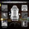 - Retractable Footrest: Elevate your gaming experience with our deluxe chair, outfitted with a retractable footrest for the ultimate in relaxation. Kick back and extend your legs, enjoying full-body support during intense gaming sessions or while taking a well-deserved break. With this deluxe addition, our chair isn’t just a seat-it’s your personal relaxation station..