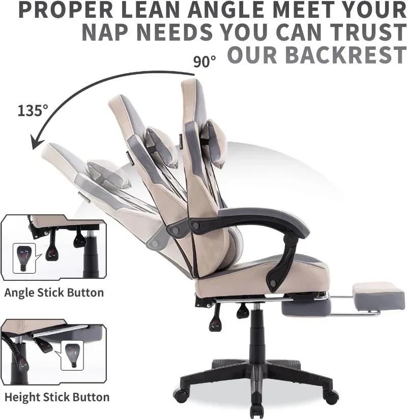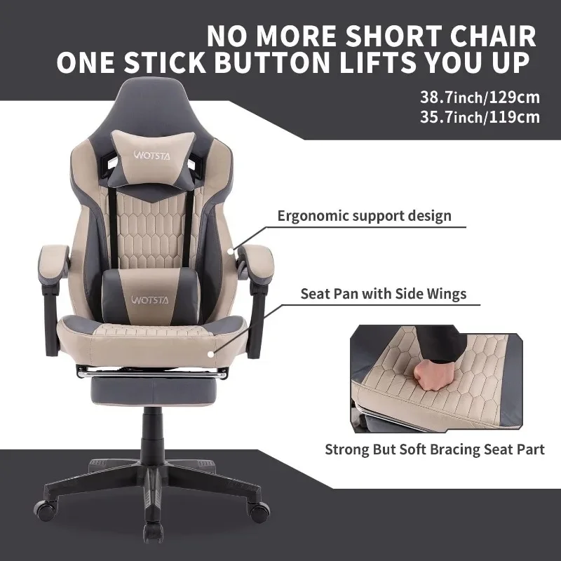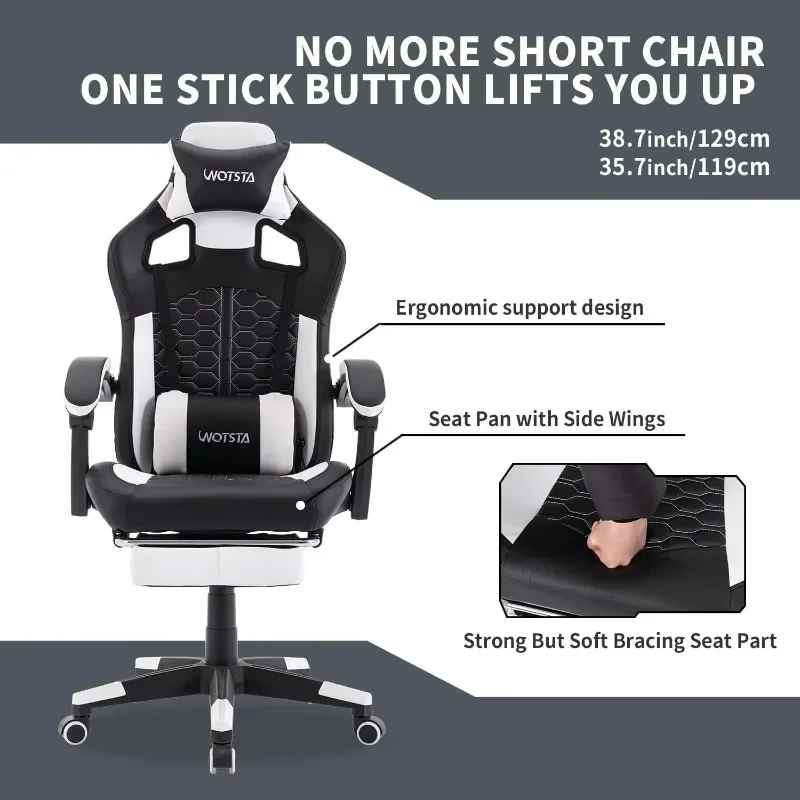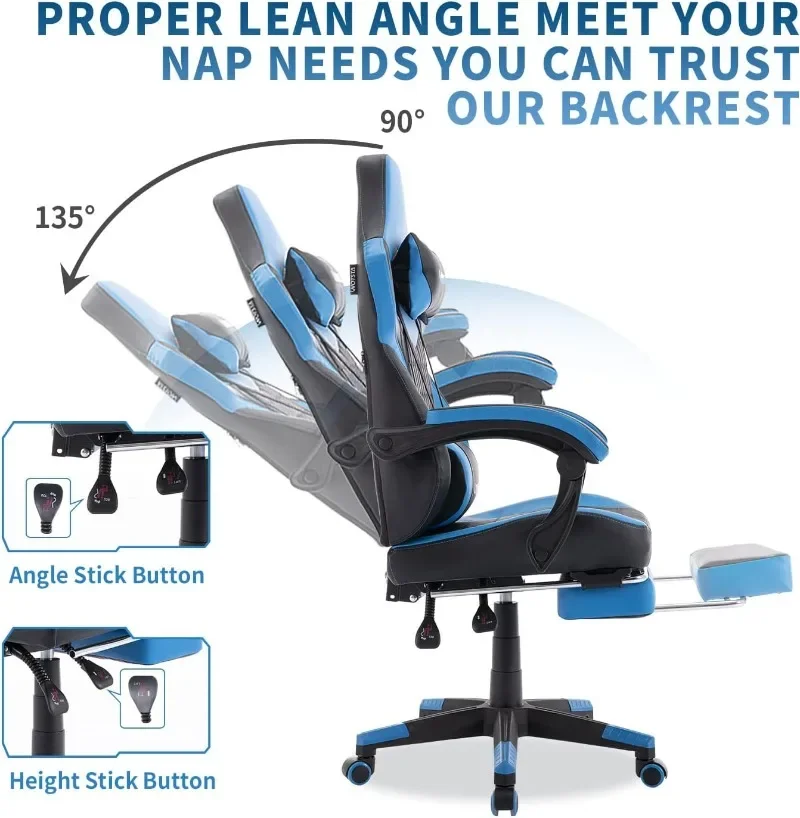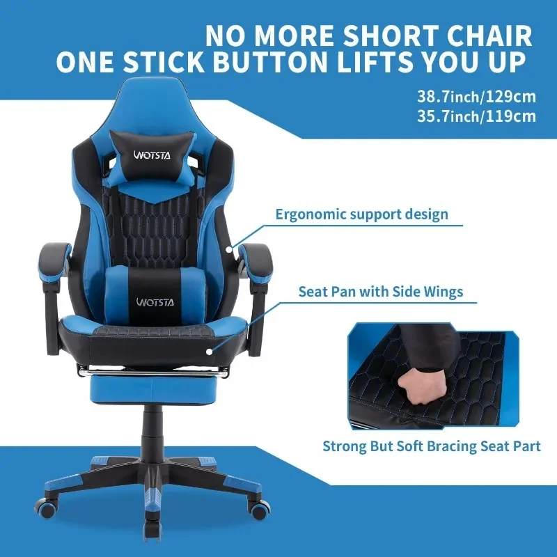 - Big And Tall – Our gaming chair has a large size and unique style. Comfort was taken into consideration during the design process,No need to repeatedly stand up and move your body, So you can enjoy uninterrupted gaming