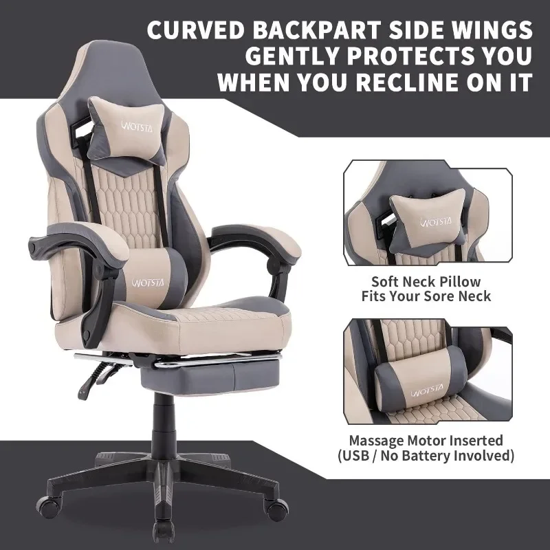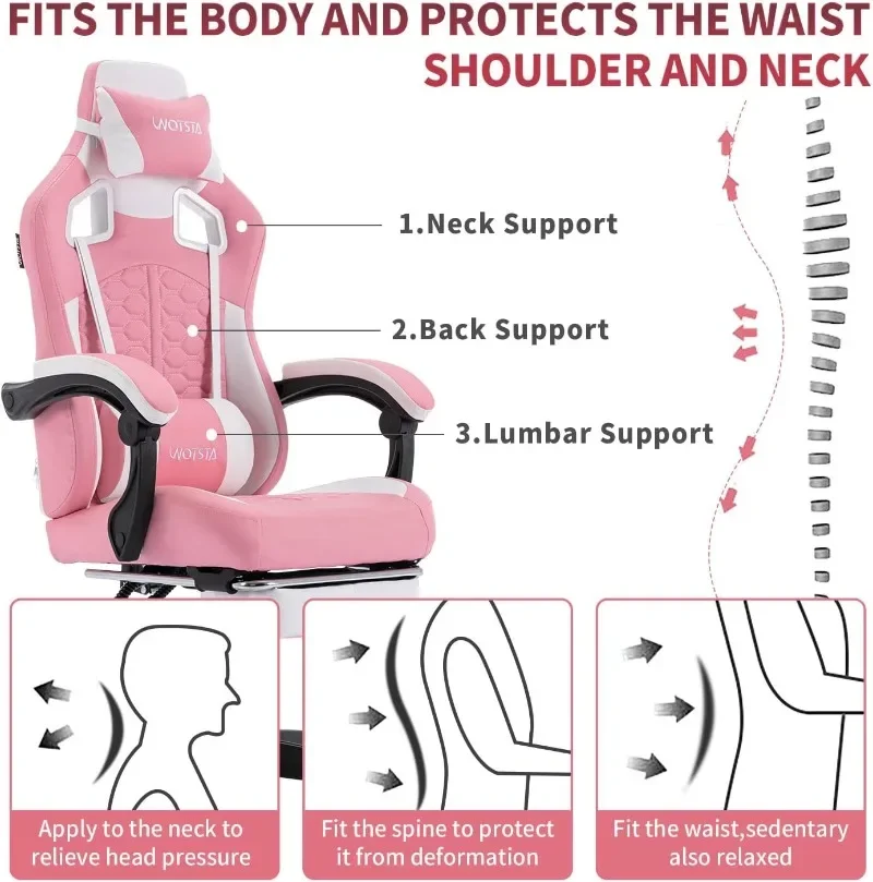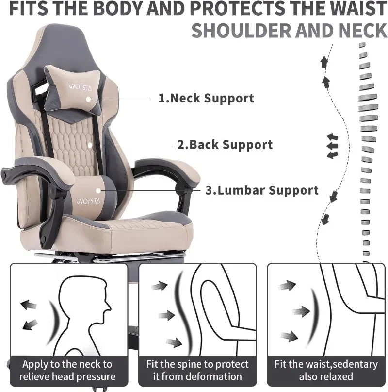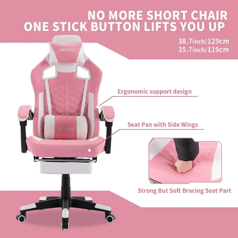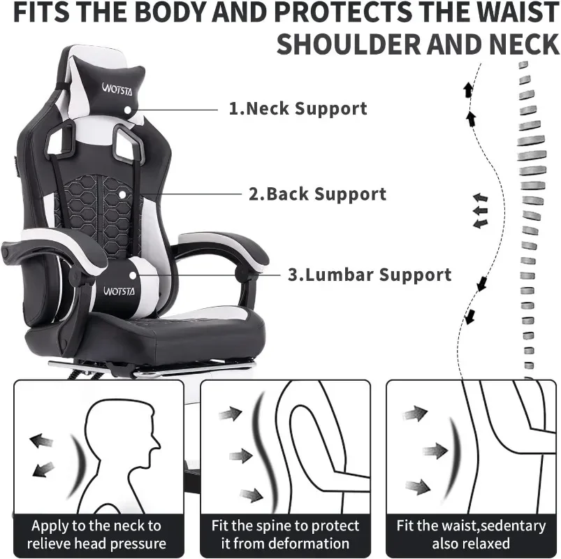 - Big And Tall – Our gaming chair has a large size and unique style. Comfort was taken into consideration during the design process,No need to repeatedly stand up and move your body, So you can enjoy uninterrupted gaming