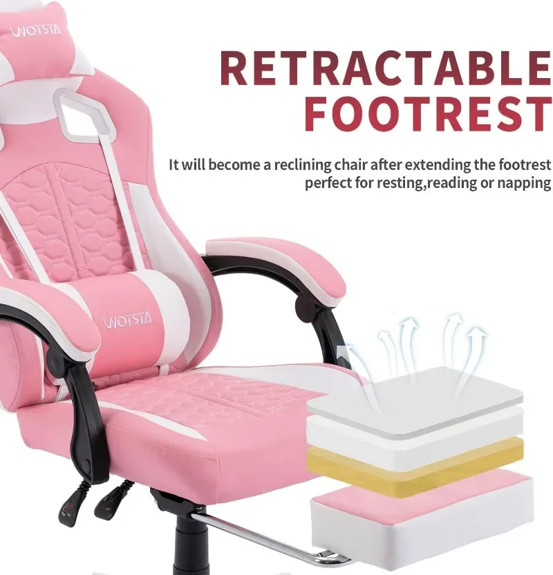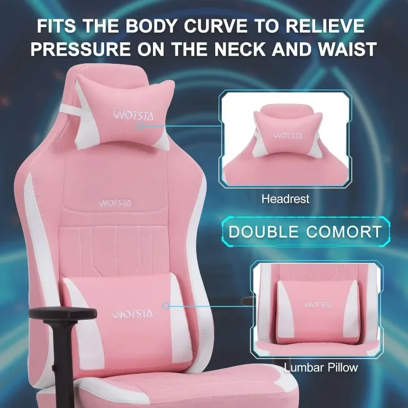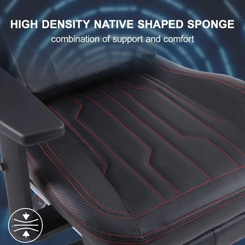 - Quality Materials – High-density sponge is used in the cushion to provide the chair with high resilience. High-quality PVC leather is used on the cushion, Headrest and lumbar pillow, Making the player sitting and touching experience more comfortable.