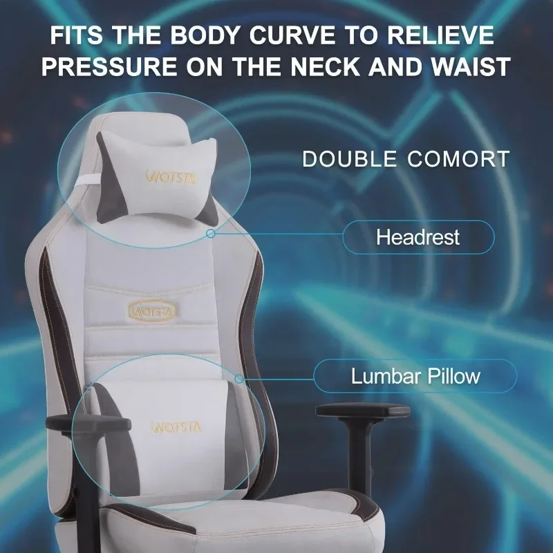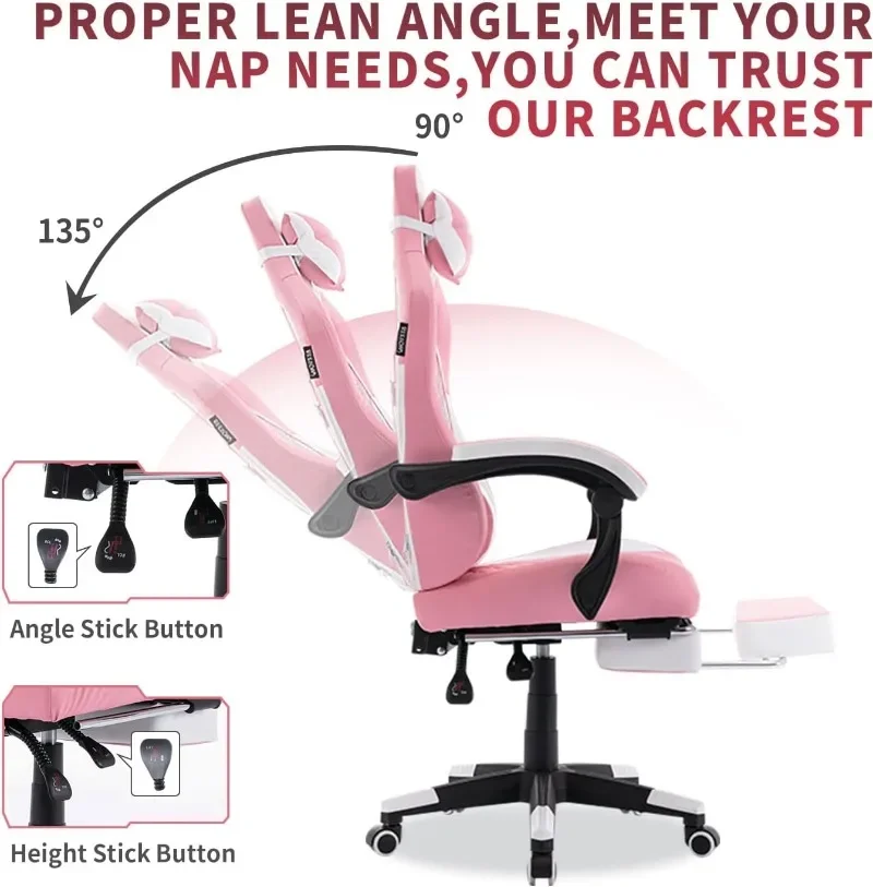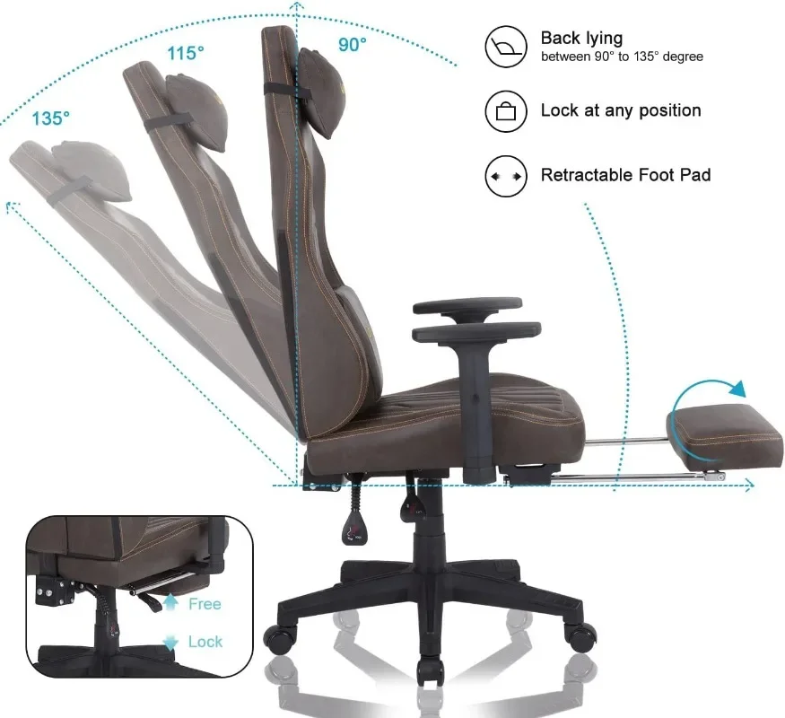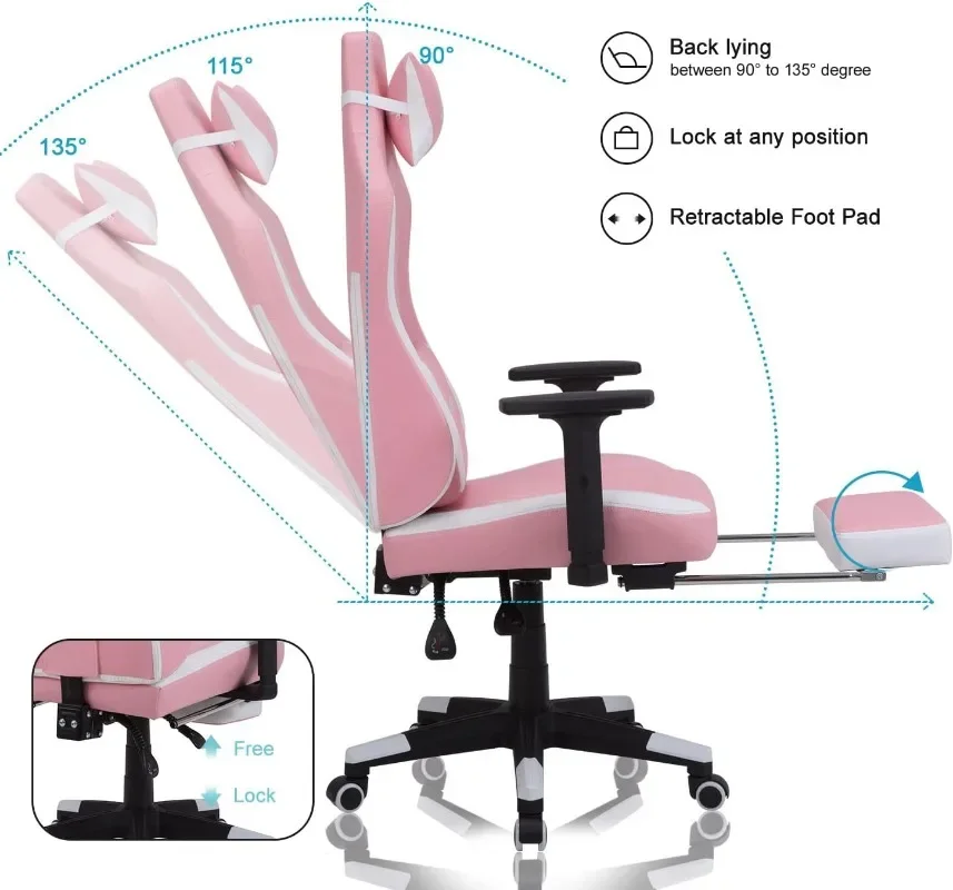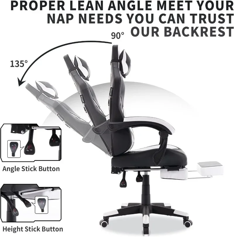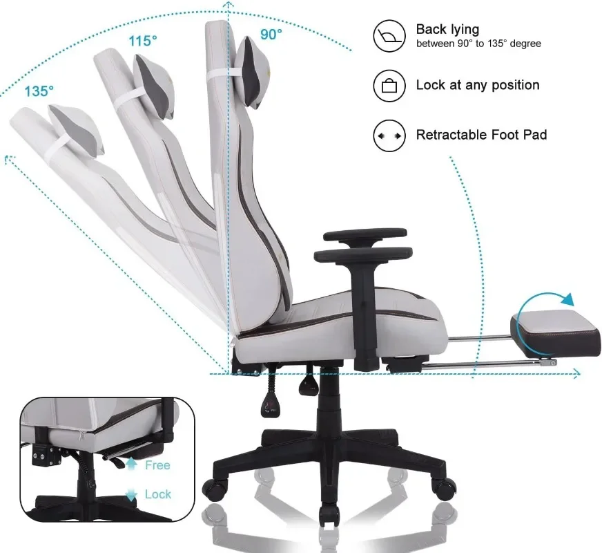 - Multifunctional – The 2D armrest’s lifting function allows you to put the chair under a desk, while the rotation function can accommodate different sitting positions. Easily lie down from90° to 135°,suitable for work,reading,watching movies,or napping.making players feel comfortable and relaxed.